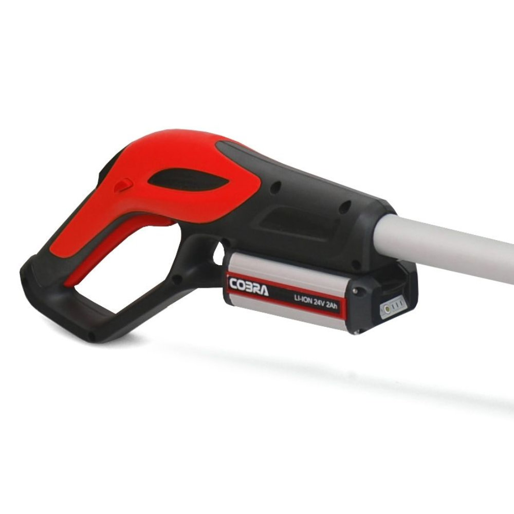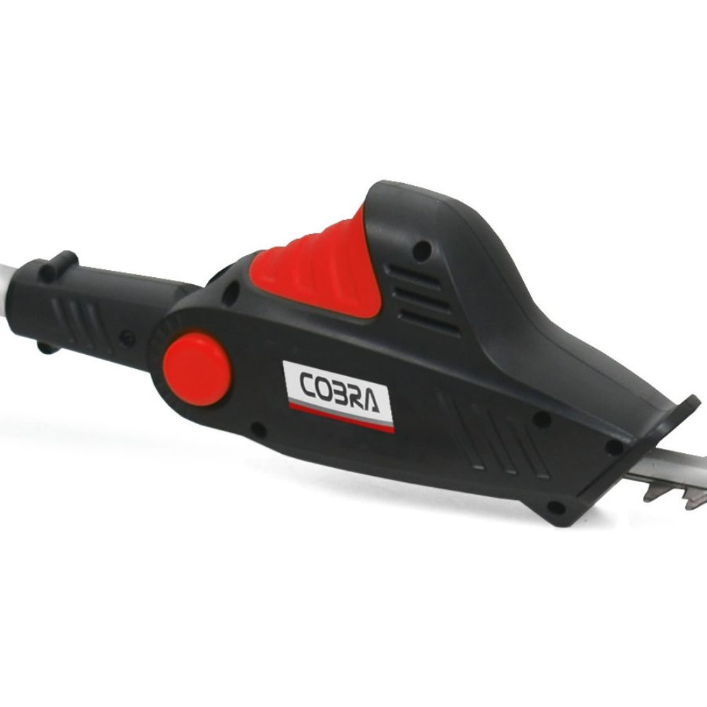 The Cobra LRH5024V is a 24V Cordless Long Reach Hedge Trimmer designed to handle demanding and awkward trimming tasks. Its telescopic shaft and articulating head provide the versatility needed to maintain long and tall hedges. It comes with a 2.0Ah Li-ion battery and charger.