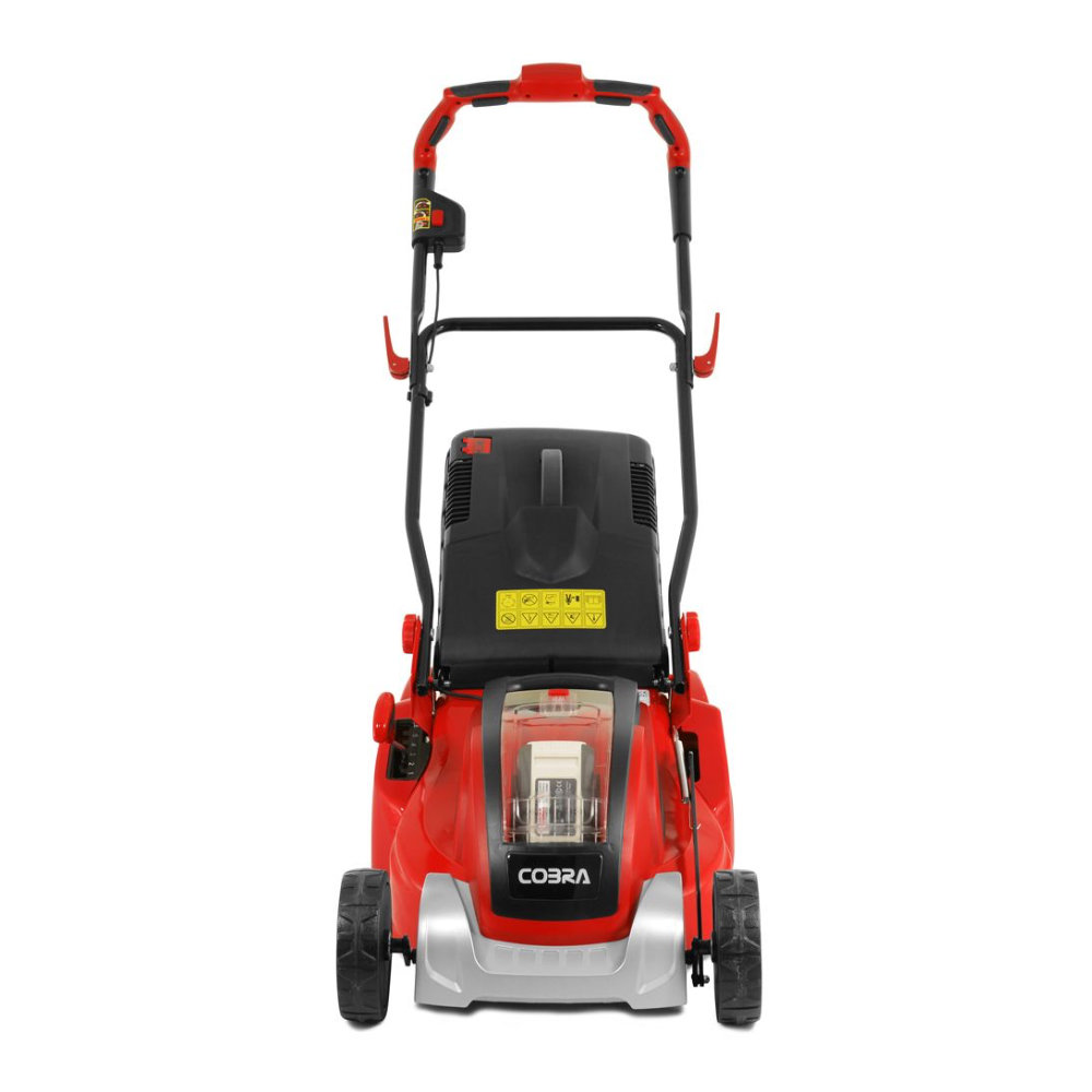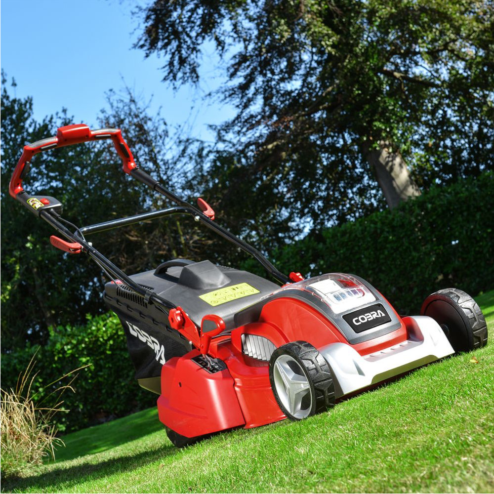 The Cobra RM4140V is a cordless Lithium-ion rear roller lawnmower that offers convenience, performance, and a traditional striped finish to your lawn. This model is hand-propelled and features a sturdy metal deck. It is powered by a 40V Lithium-ion battery, offering a quiet yet potent operation, free from the restrictions of petrol or electrical cables.