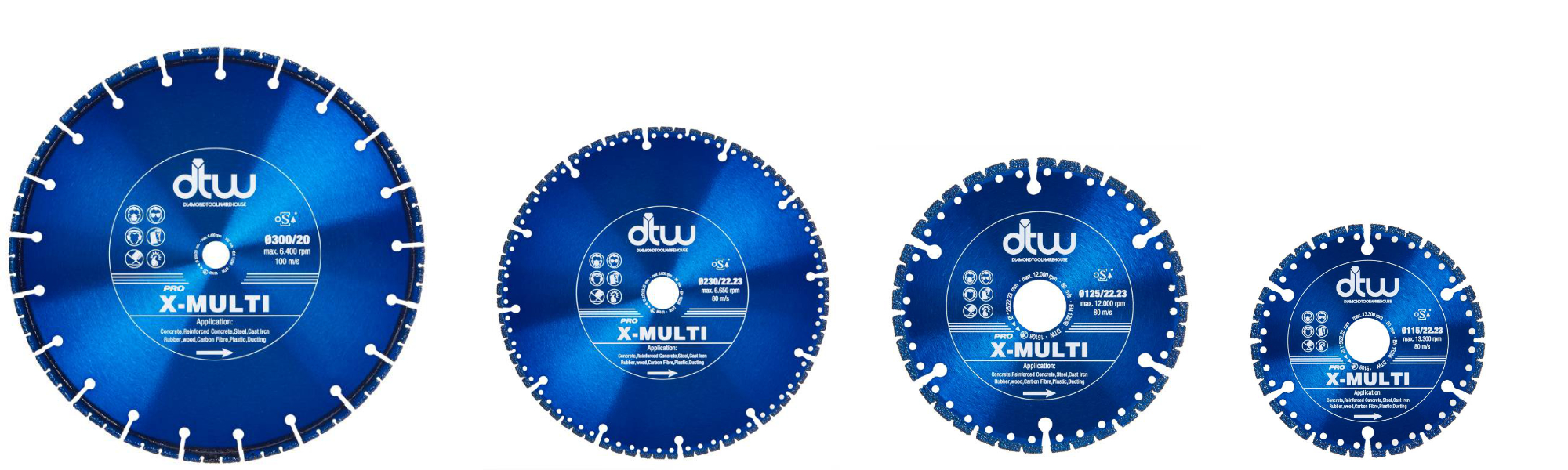 Here at DTW, we specialise, well, in everything for diamond cutting, cores and drill bits. So when it comes to a multi diamond blade with our initials on it, you can trust in its ability to deliver. The DTW Pro X-Multi Saw Diamond Blade is an exceptional midrange multi-purpose diamond saw blade for so many cutting applications.