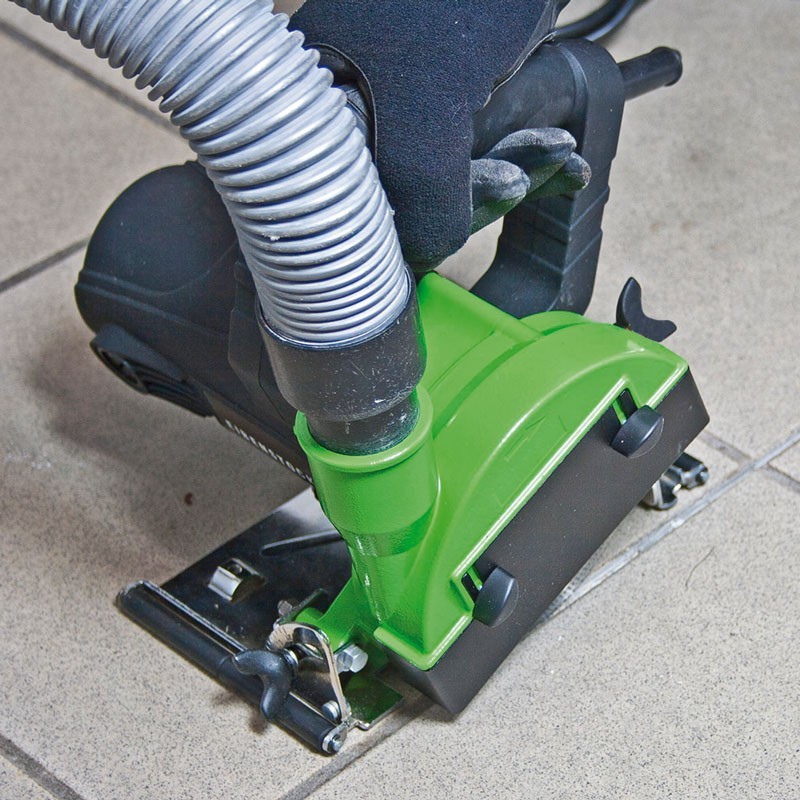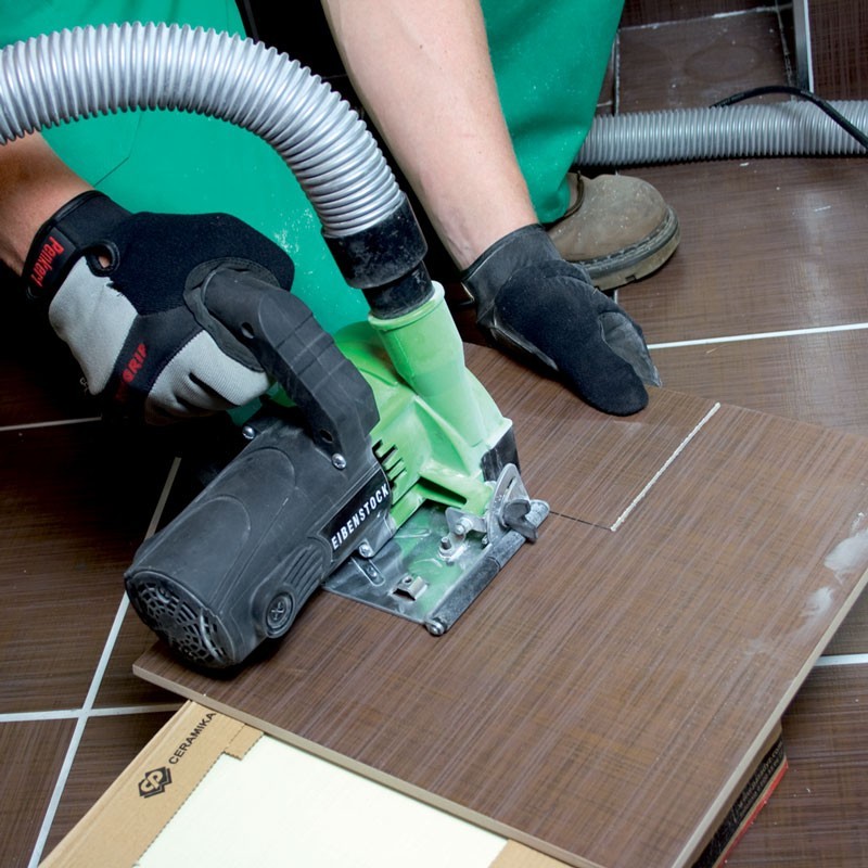 Featuring a roller-guided plate, the EDS 125 ensures smooth guiding and protects the surface of the material being cut. An integrated water supply with flow regulator makes wet cutting easy and efficient, with easy adjustment of the water-volume ensuring dust-free working while wet cutting.