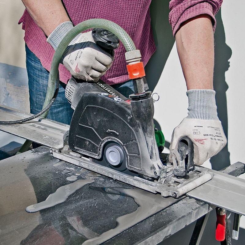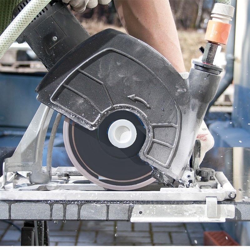For dry cutting, this diamond cutter is ideal for dust-free cutting of concrete slabs, tiles, and blocks. For wet cutting, the water feed input enables efficient cutting of hard concrete, stone, and tiles.