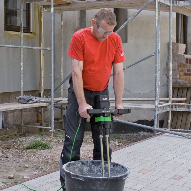 The twin paddles work together to reduce air entrainment, while also reducing counter rotational torque so that the mixer drill does not try to twist when mixing heavier materials. This makes the MZR 24 megamixer the most thorough mixer for heavy mortars, fibre filled cements, pastes, putties, and epoxies.