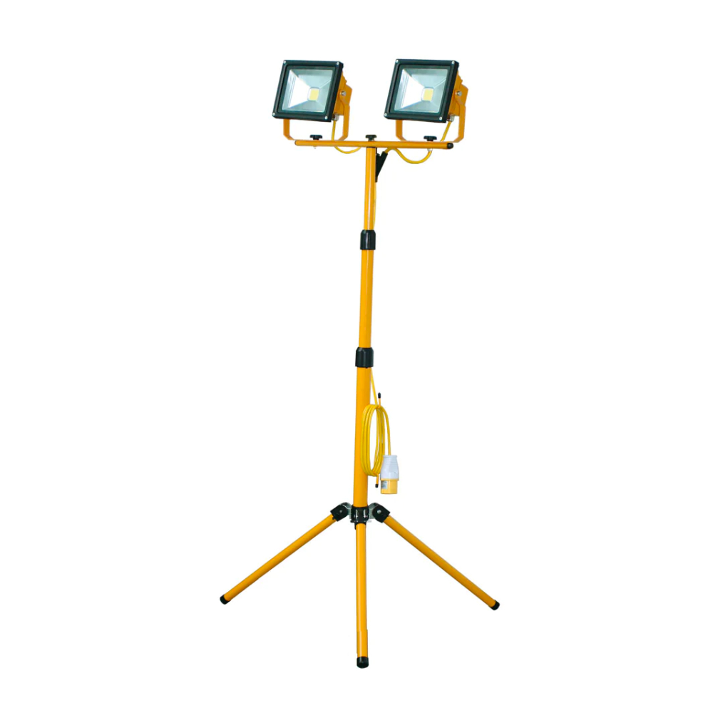Built for the long haul, this light system stands on a sturdy steel adjustable tripod that boasts IP65 light fittings, guaranteeing its resilience against challenging conditions. Both LED heads are safeguarded by resilient metal cages, ensuring the longevity of the lenses and providing an added layer of safety. With convenience in mind, the tripod is both height adjustable and collapsible. Whether you’re shifting your work site or wrapping up for the day, the incorporated handle simplifies storage and transportation. The tripod height adjustment is seamless, with two twist grip locks facilitating quick changes between 725mm and 1415mm. Also included is a 3-meter lead, perfectly complemented by a 16amp plug with an IP44 rating, rounding off this 6.10kg lighting marvel.