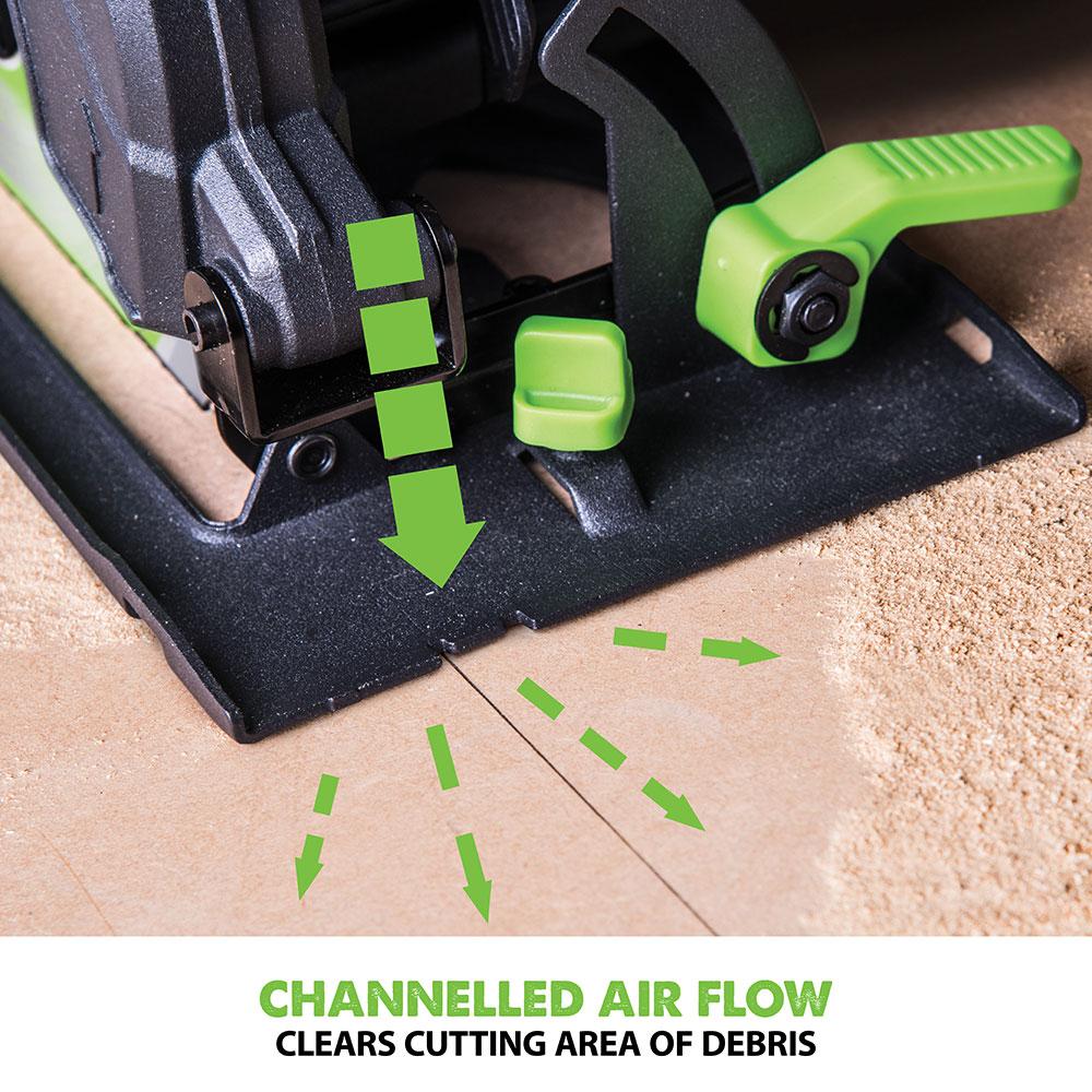 - Enhanced Visibility: Channeled airflow and base indicators help in clear visualization of the cutting line.