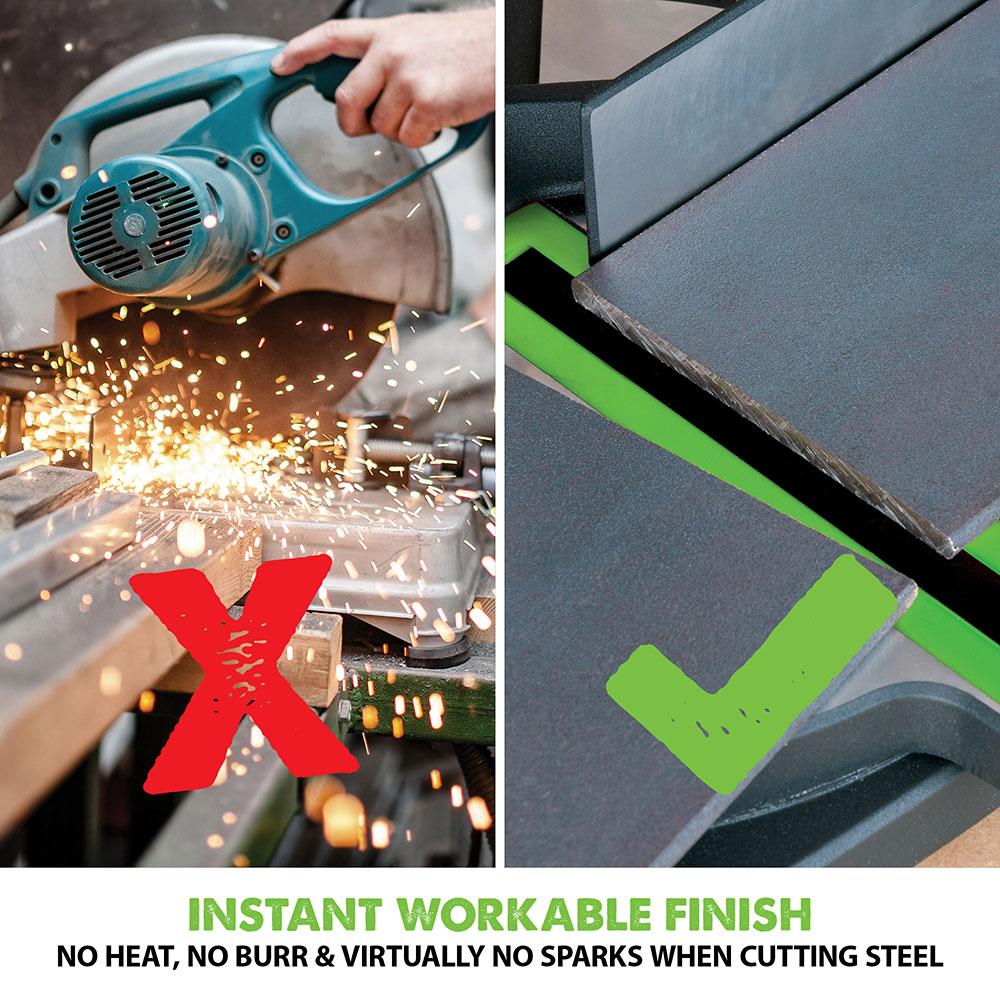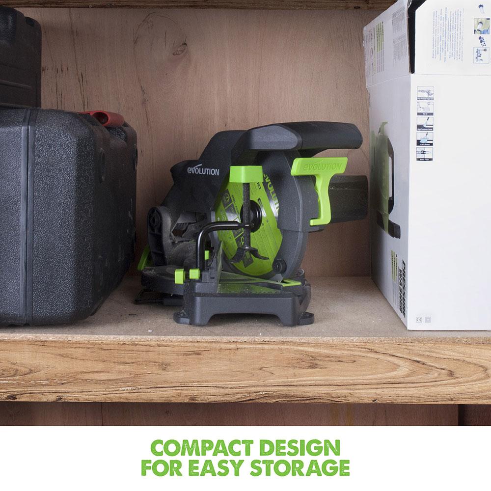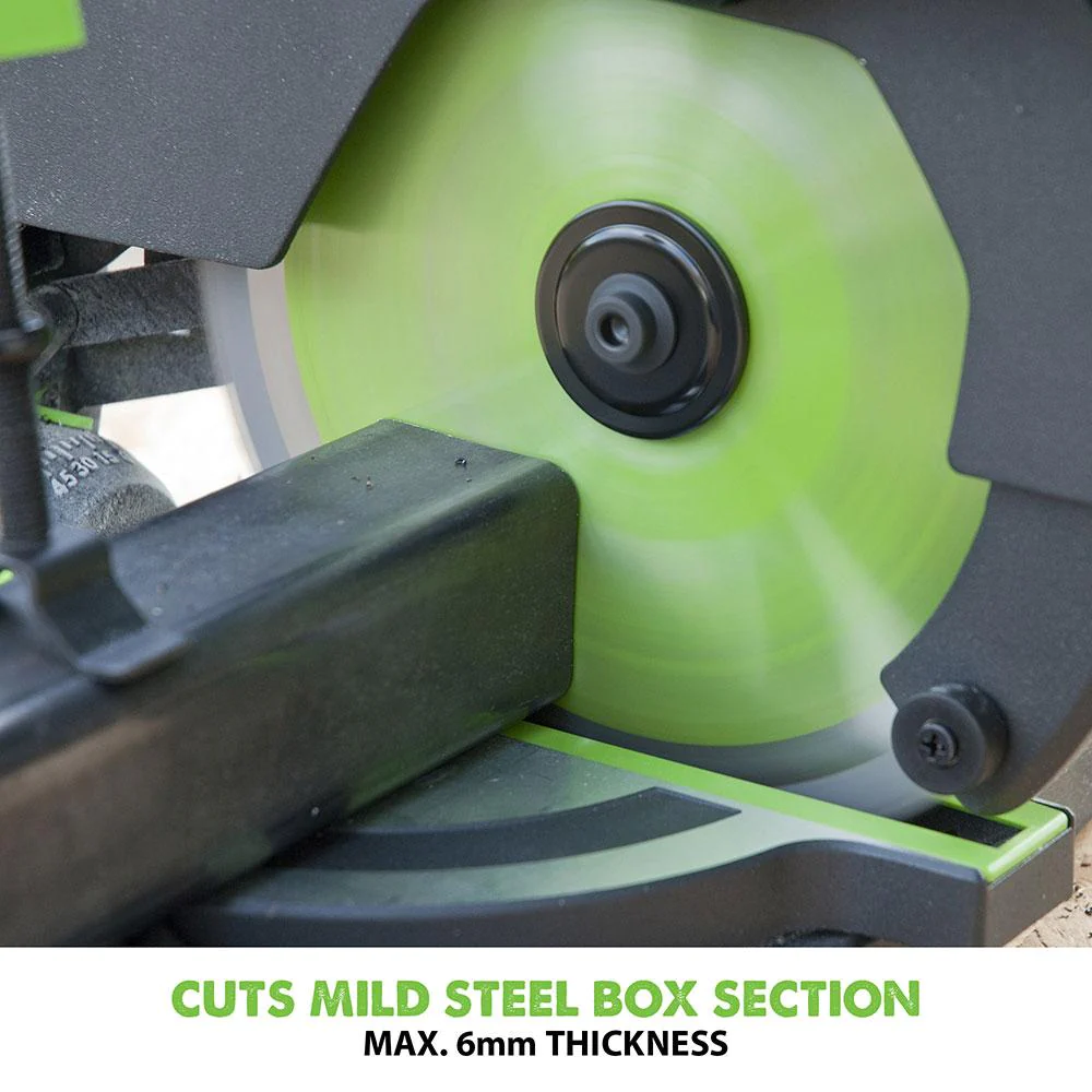 - Compatibility & Extras: This mitre saw is compatible with the Evolution Mitre Saw Stand and a 210mm Diamond blade (both sold separately). Additionally, a Japanese Tungsten-Carbide-Tipped (TCT) 210mm blade is included, ensuring you can start working right away.