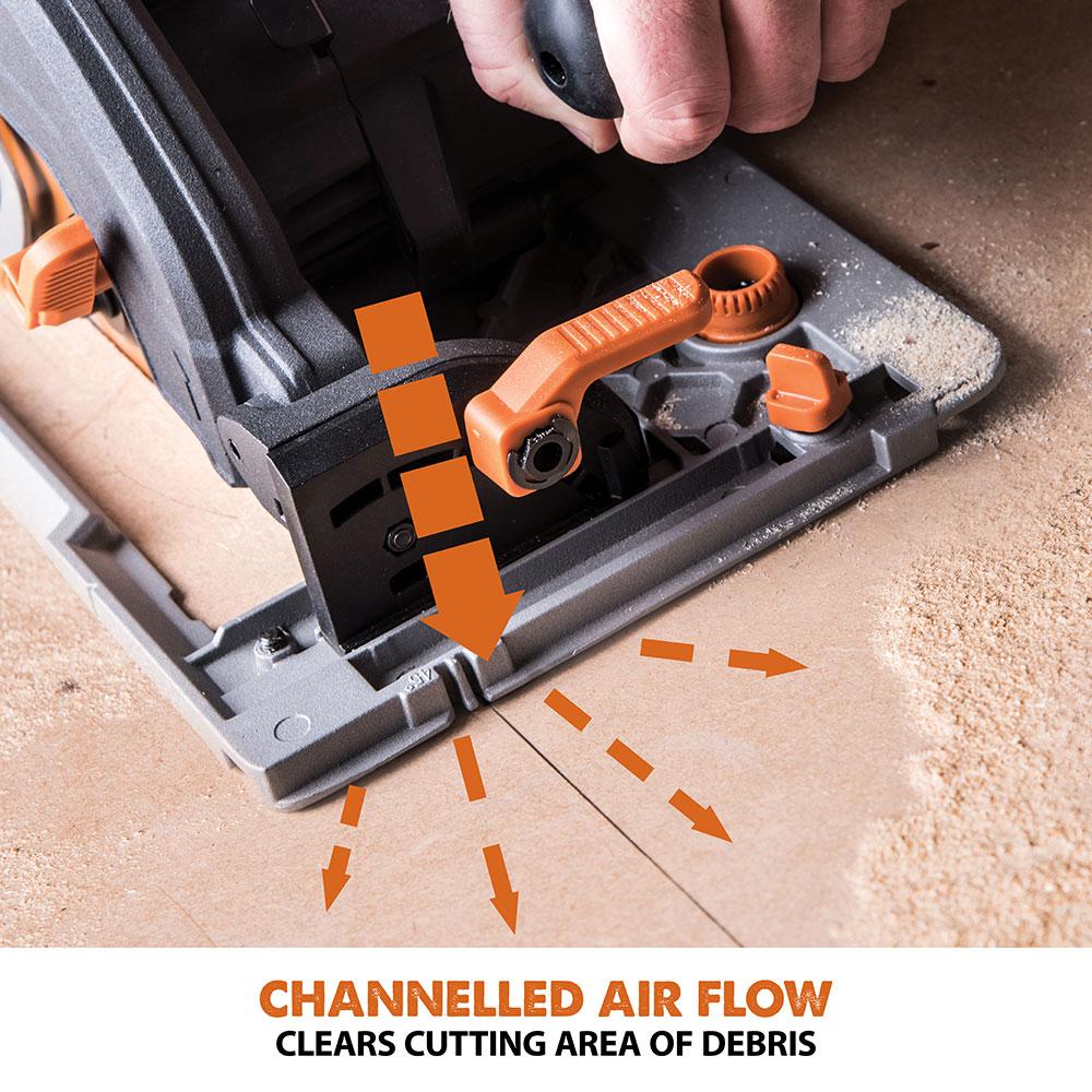 - Enhanced Visibility: Channeled airflow & base indicators to optimize the visibility of the cutting line.