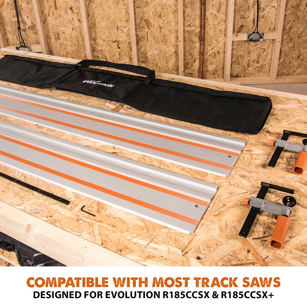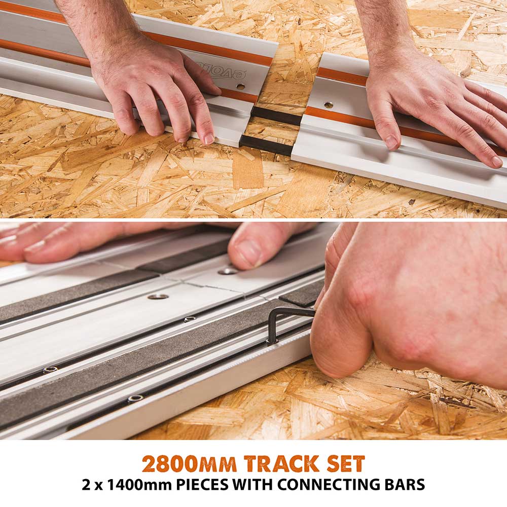 The package also brings you the rugged and reliable ST2800 2.8m circular saw track, constructed from durable 6063 T5 aluminium alloy. It includes essential accessories such as clamps and connecting blocks, and a 1.4m carry bag for ease of transportation. This track is ideally suited for working on 8x4ft sheet materials, enabling straight-line cutting with utmost accuracy. The bundle stands as a testimony to Evolution’s commitment to quality, offering a 3-year limited warranty, reassuring you of its durability and long-lasting performance.