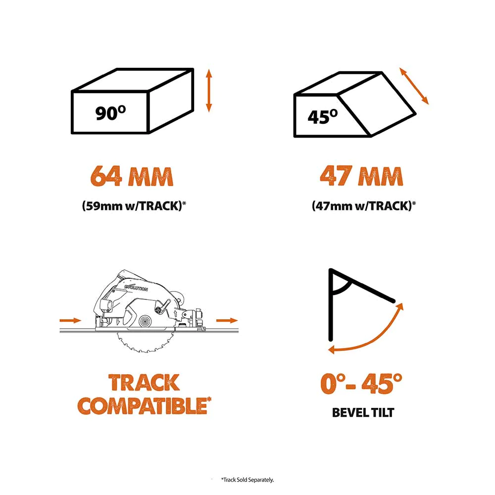 At the heart of this powerhouse tool is the multi-material cutting technology, a feature that means one saw, one blade can cut through virtually any material. Its potent 1600W hi-torque motor, combined with an optimized gearbox and blade system, ensures smooth, reliable, and square cuts consistently. Customize your cutting depth up to 64mm and easily tackle trench cuts, thanks to its adjustable settings. The 0° – 45° bevel tilt with a virtual pivot maintains the blade on the same cutting line at any angle when attached to a track, promising precise cuts every time. Further enhancing its performance are ergonomic, soft-grip handles, ensuring maximum control, versatility, and precision.