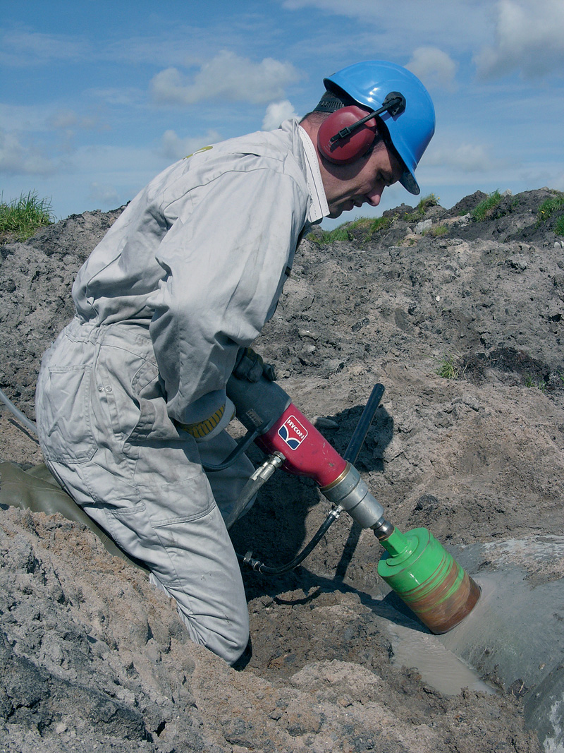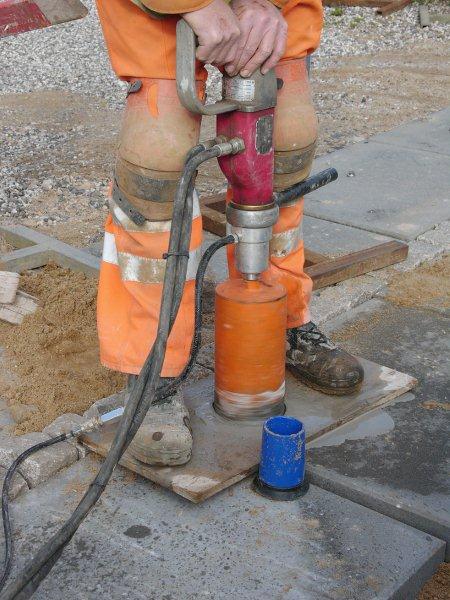 It is extremely easy to use and will drill through any material. There is no need for a drilling rig, however for more tough jobs the Hydraulic Core Drill HCD25-100 fits in a standard drill rig.
