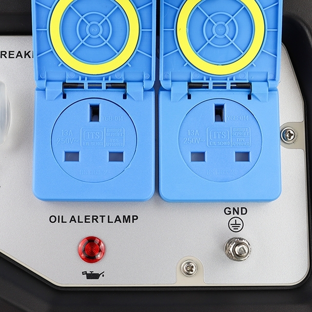 The design and build of this generator has been taking into consideration, with the 2 x 230v 13a sockets fitted at one end, to minimise damage to sockets when wheeling the generator through narrow gaps, such as doorways.
