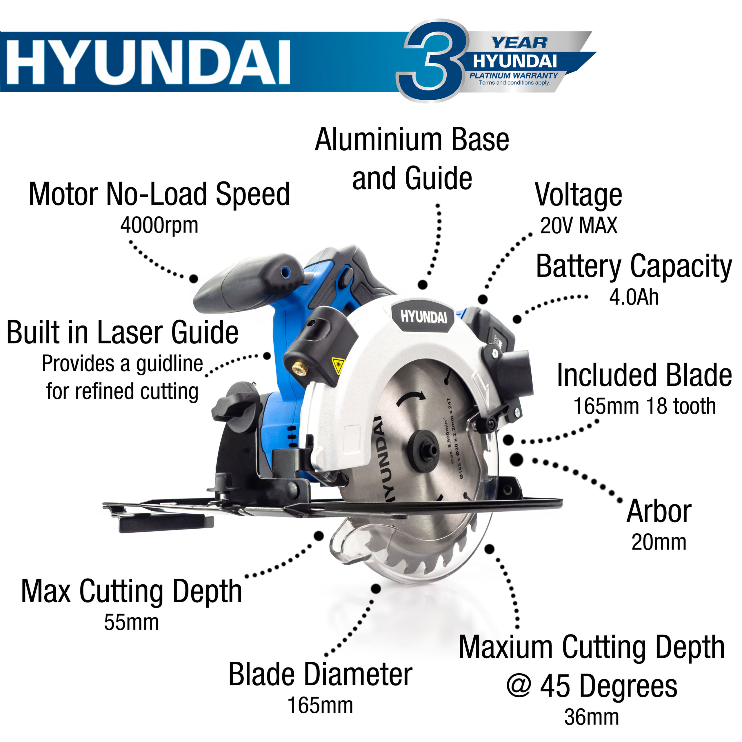 The HY2183 Hyundai Cordless Circular Saw comes with a 3 year Hyundai warranty* / 1 year commercial warranty* (terms apply) with full UK parts and service backup to maintain your jigsaw for years to come.
