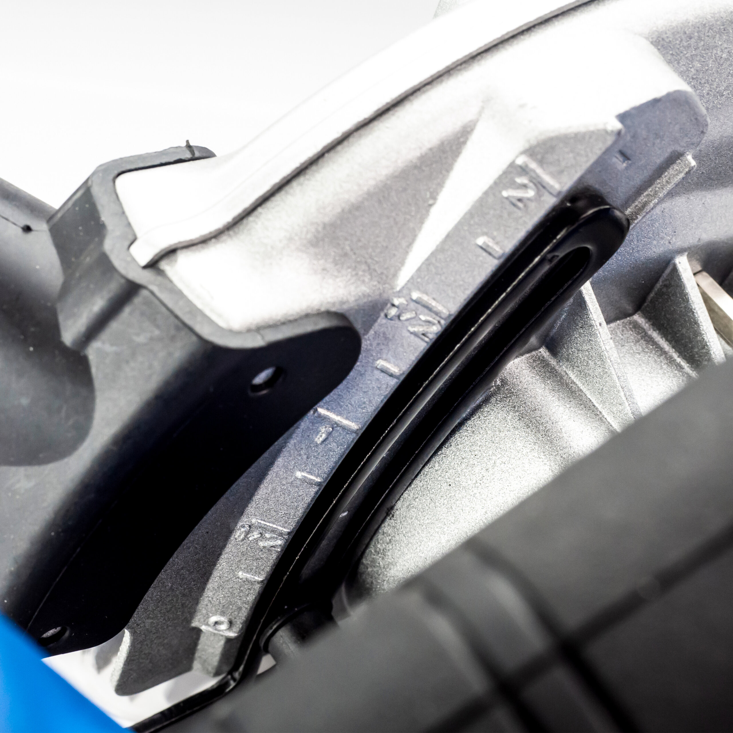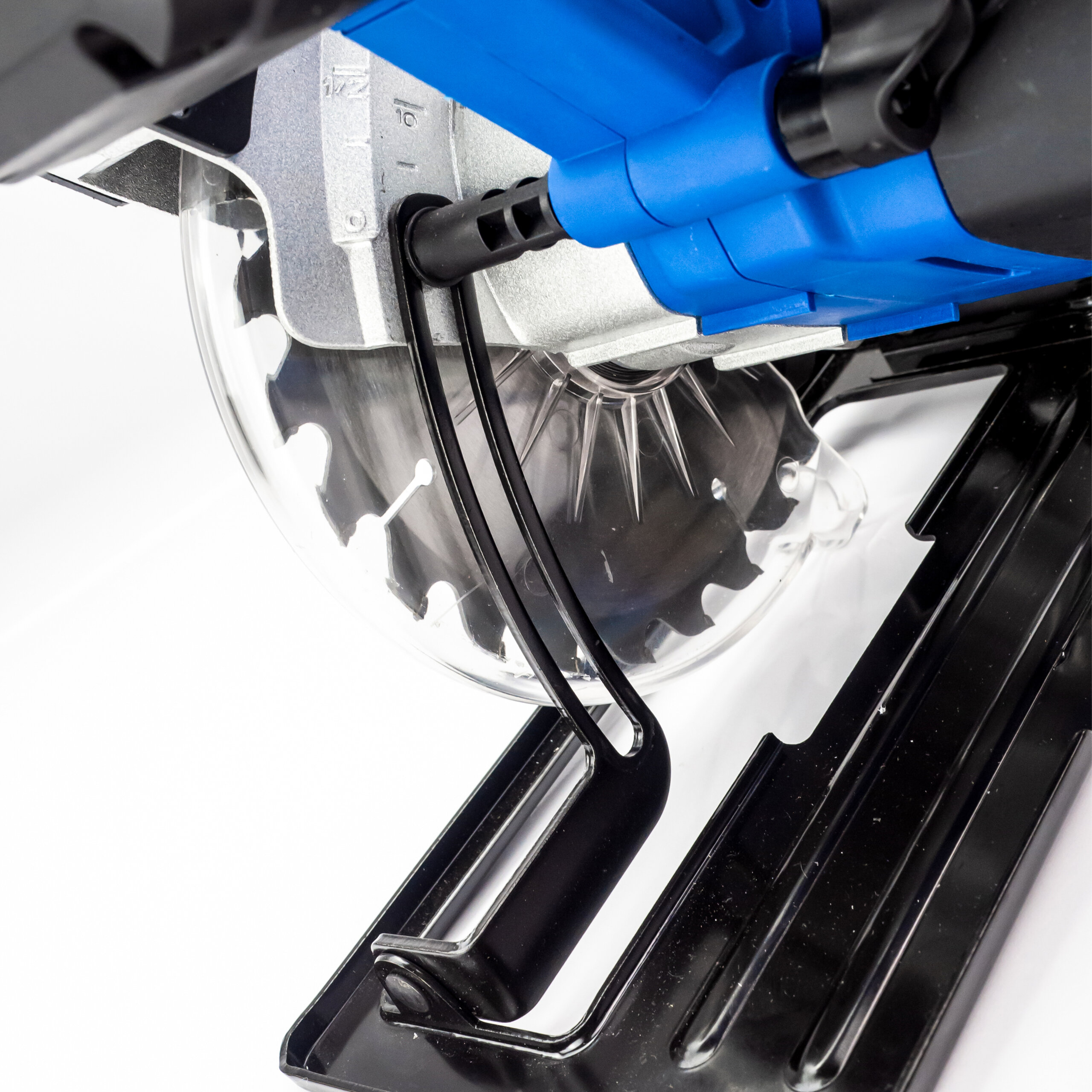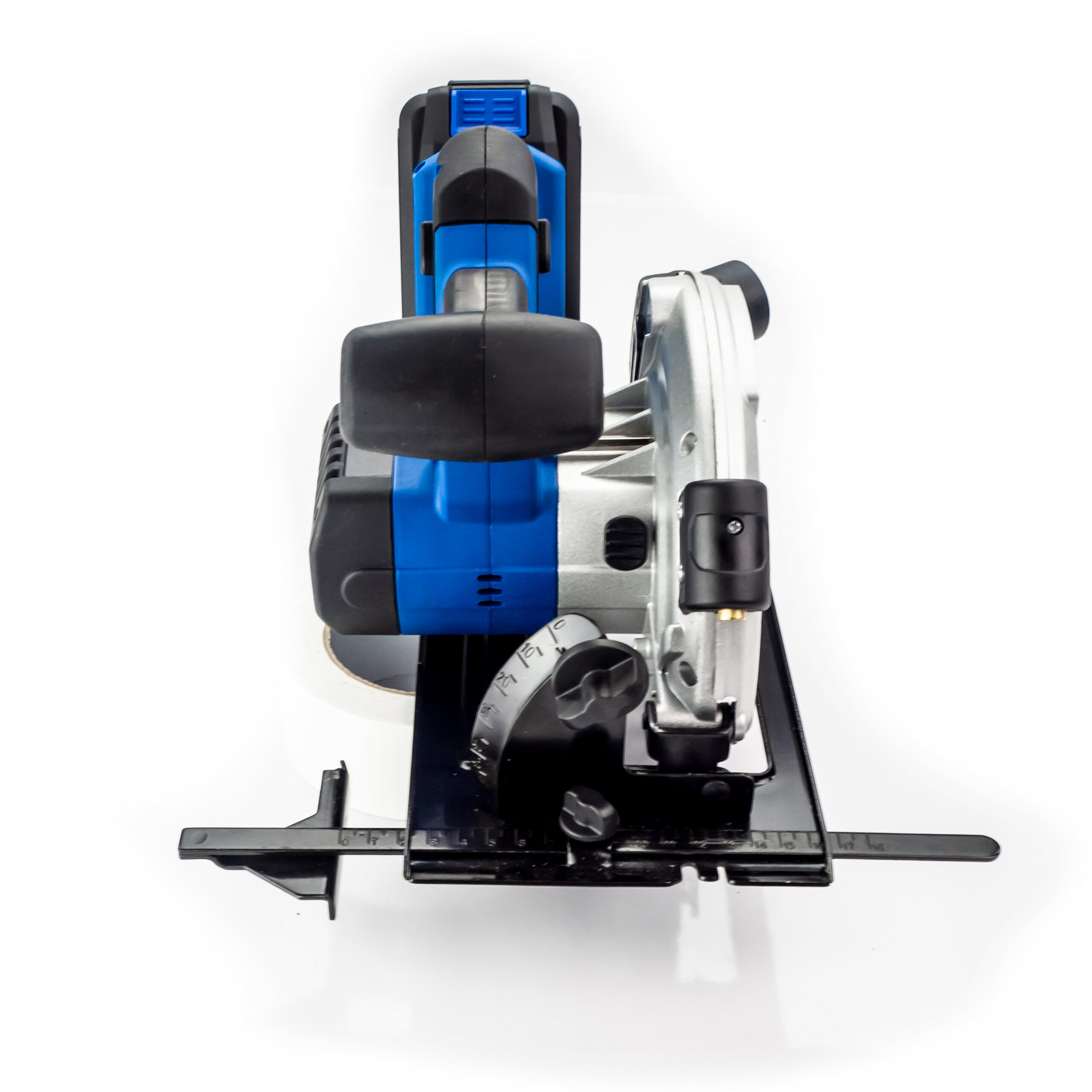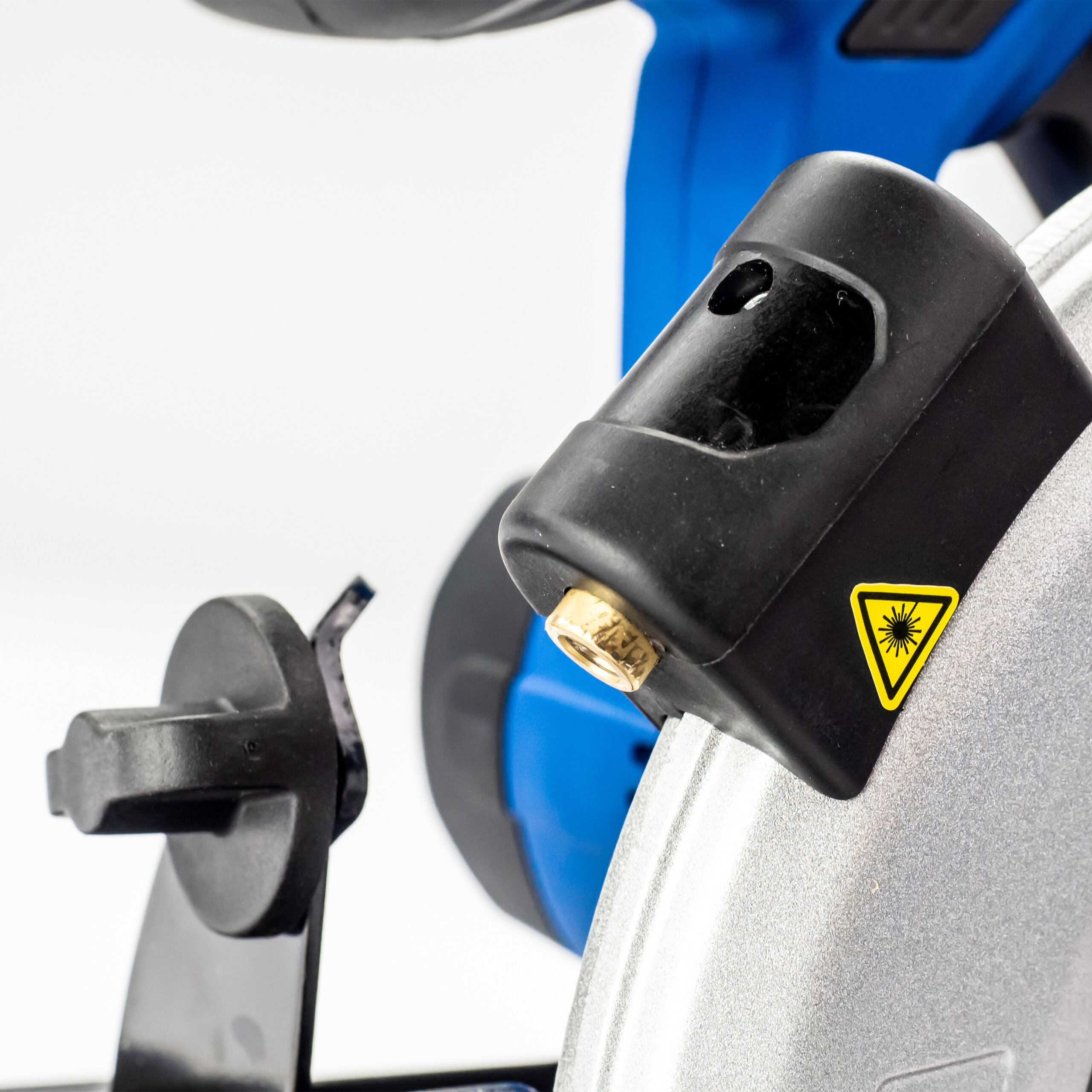 Weighing just 2.75kg including the battery, this Hyundai cordless circular saw features an in-built LED light for easy visibility even in low light areas, a laser guide for cutting precise, straight lines, as well as a soft-grip handle for added comfort.