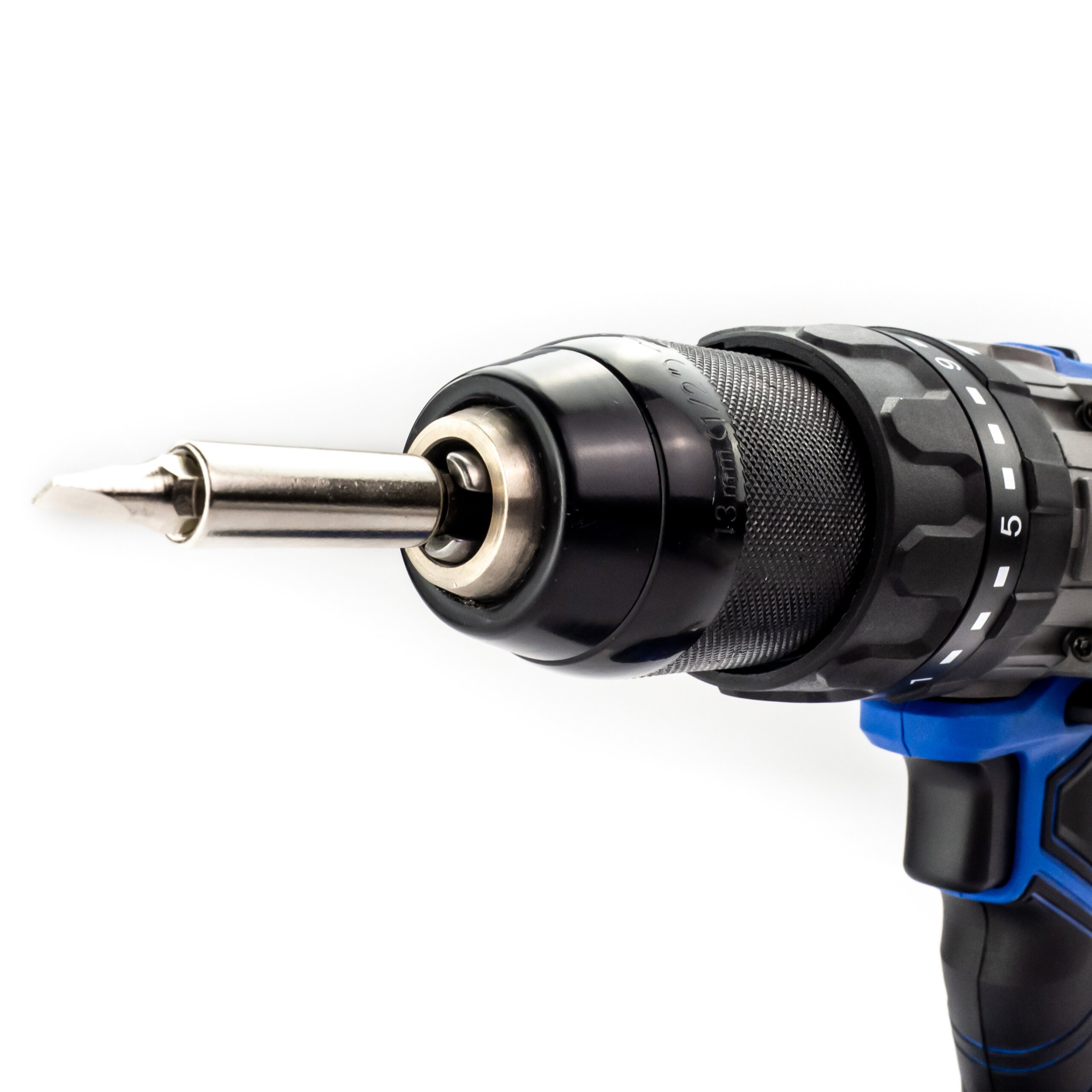 The HY2176 drill driver is fitted with 21 torque settings. Helping to prevent overdriving screws into delicate surfaces such as drywall or damaging small or fragile screws, ensuring a perfect finish each and every time regardless of the job. It also features a metal chuck for added durability.