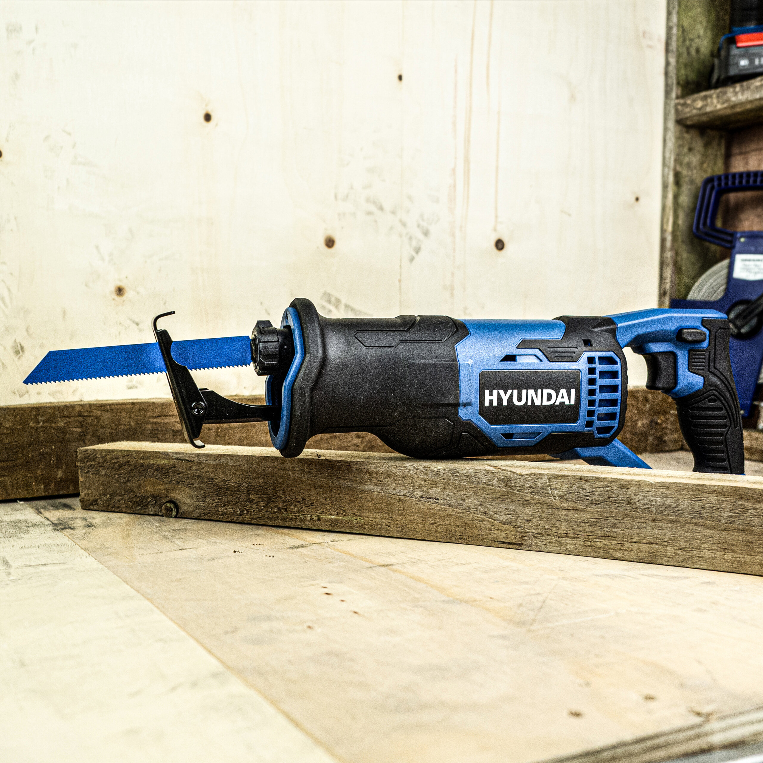 This Hyundai reciprocating saw features an in-built LED light for easy visibility even in low light areas, as well as a soft-grip handle for added comfort.
