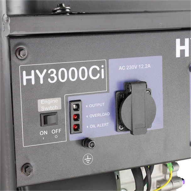 The HY3000CI also benefits from additional safety features such as each individual socket having an overload protection breaker and a low-level oil shutoff which will stop the generator’s engine, preventing it from powering back up until you add more fuel.