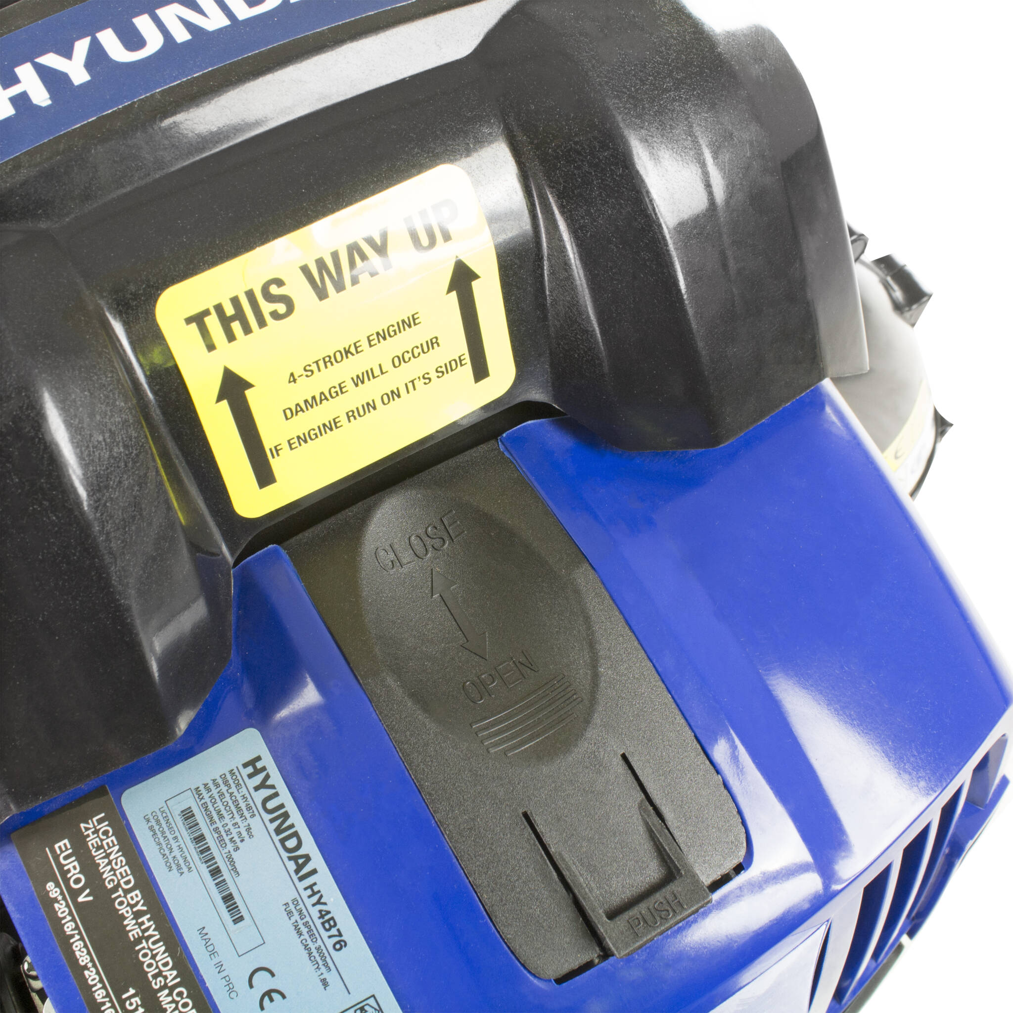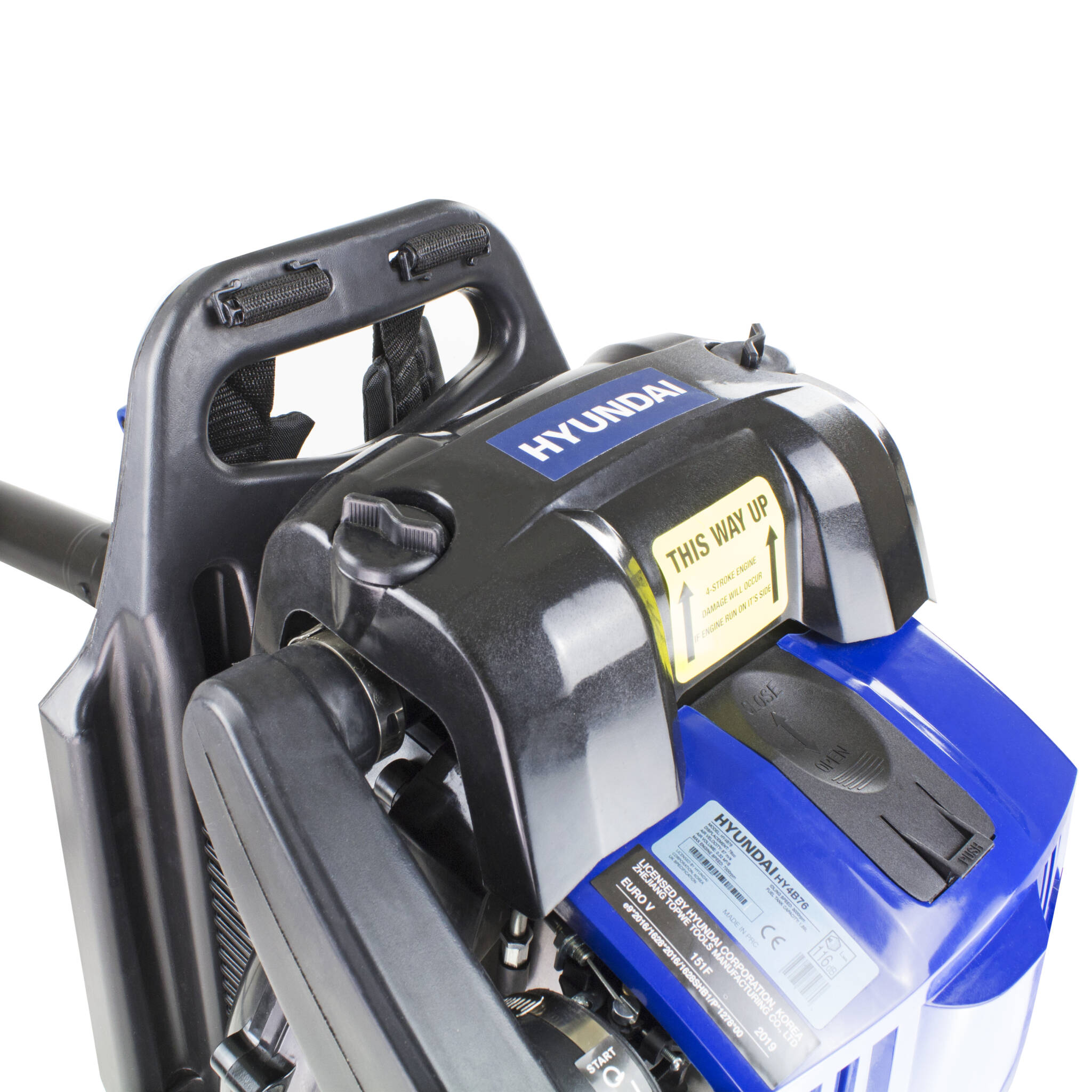 The HY4B76’s powerful 76cc 4 stroke air cooled single cylinder engine. With EURO 5 engine certification lowers fuel consumption as well as emissions while maintaining a powerful performance and running on straight unleaded petrol (no 2-stroke oil mixing required).