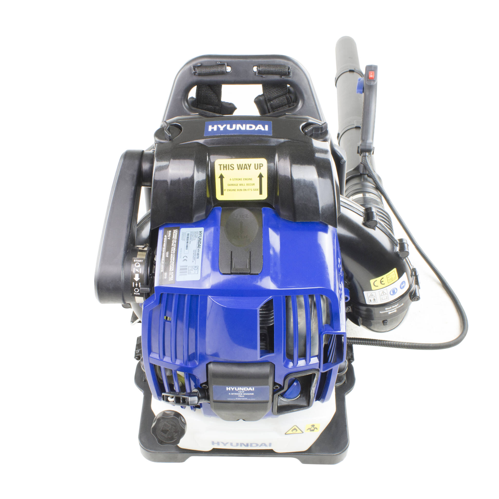 The HY4B76 is a powerful, high performance petrol backpack leaf blower from Hyundai. Designed for moving large volumes of debris, ideal for the most demanding tasks within large gardens and parks.