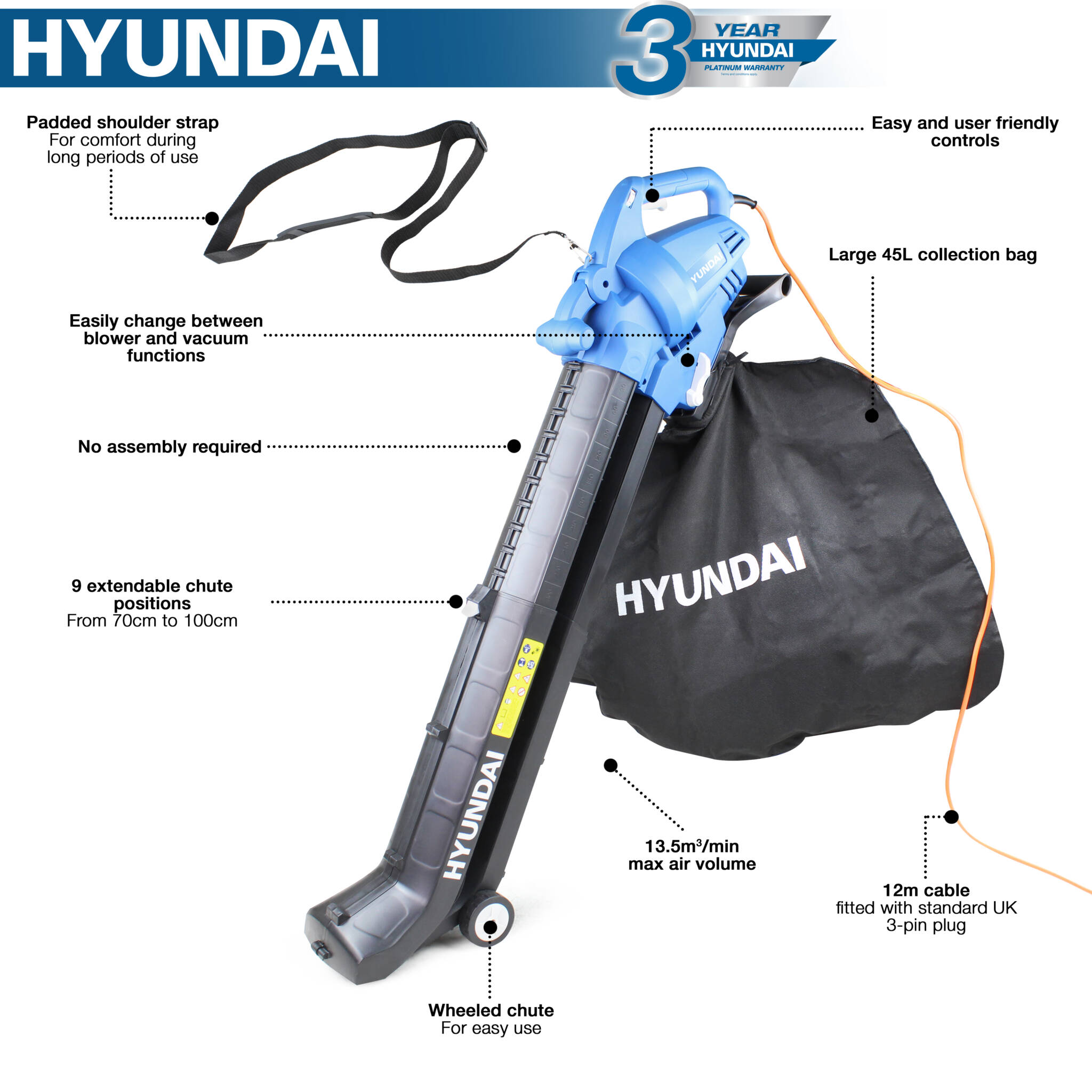 This Hyundai HYBV3000E Electric Garden Vacuum also features a extra-long 12m power cable, allowing you to cover a wider area without having to reach for an extension cable.