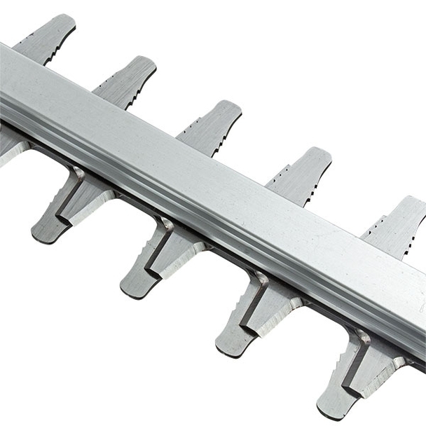 Its laser-cut steel hardened 520mm cutting blade, with its cutting teeth spaced out in 23mm intervals, will trim back any garden overgrowth in no time, providing a precise cut each and every time.