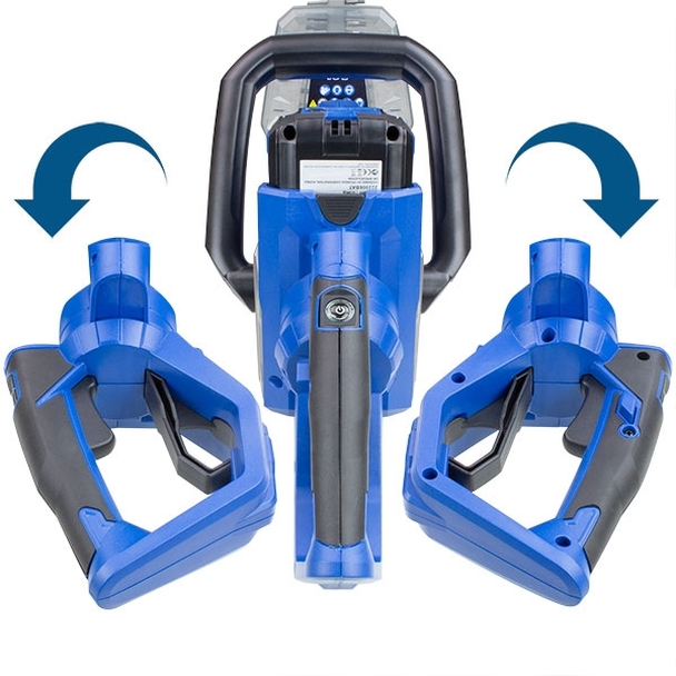 The rear handle can be rotated through 180 degrees left or right so you can manage the hedge trimmer comfortably when working at different angles. This is especially handy for switching between cutting the sides and the tops of hedges.
