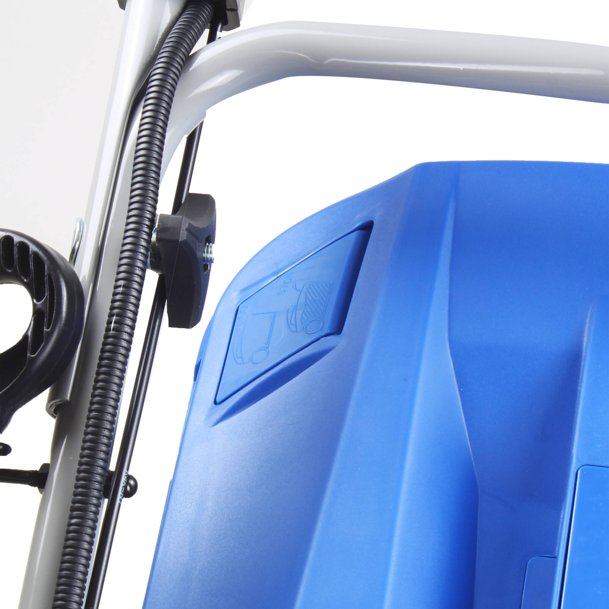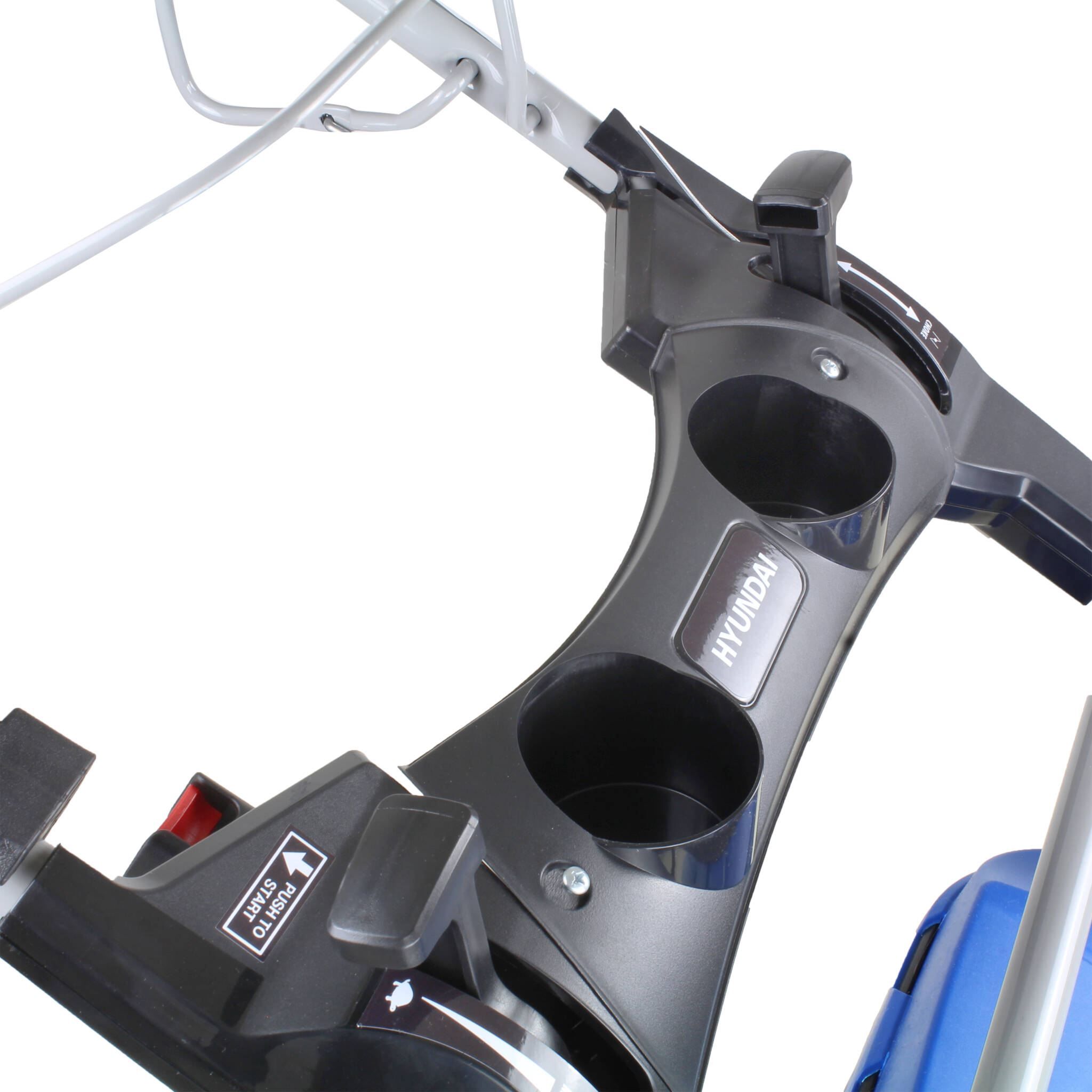The soft grip handles can be folded forwards oven the main body for extra-compact storage to save space in your garden shed or garage. It even comes with cup holders to hold those all important ice-cold drinks in the summer to keep you cool and comfortable whilst mowing your lawn.