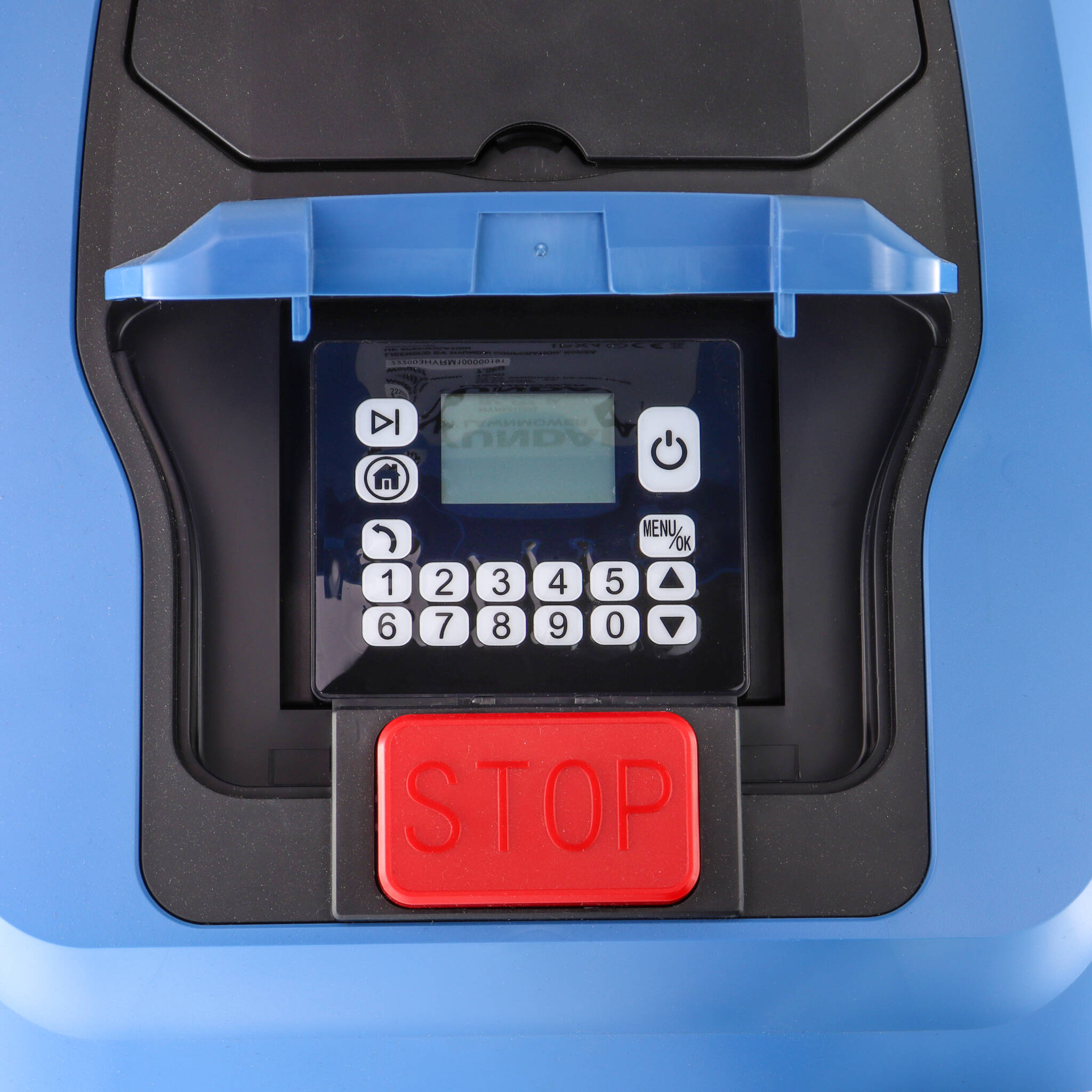 The HYRM1000 battery-powered robot lawn mower has a PIN code to protect it against theft – if this mower is stolen from your garden, it cannot be started without the security pin.