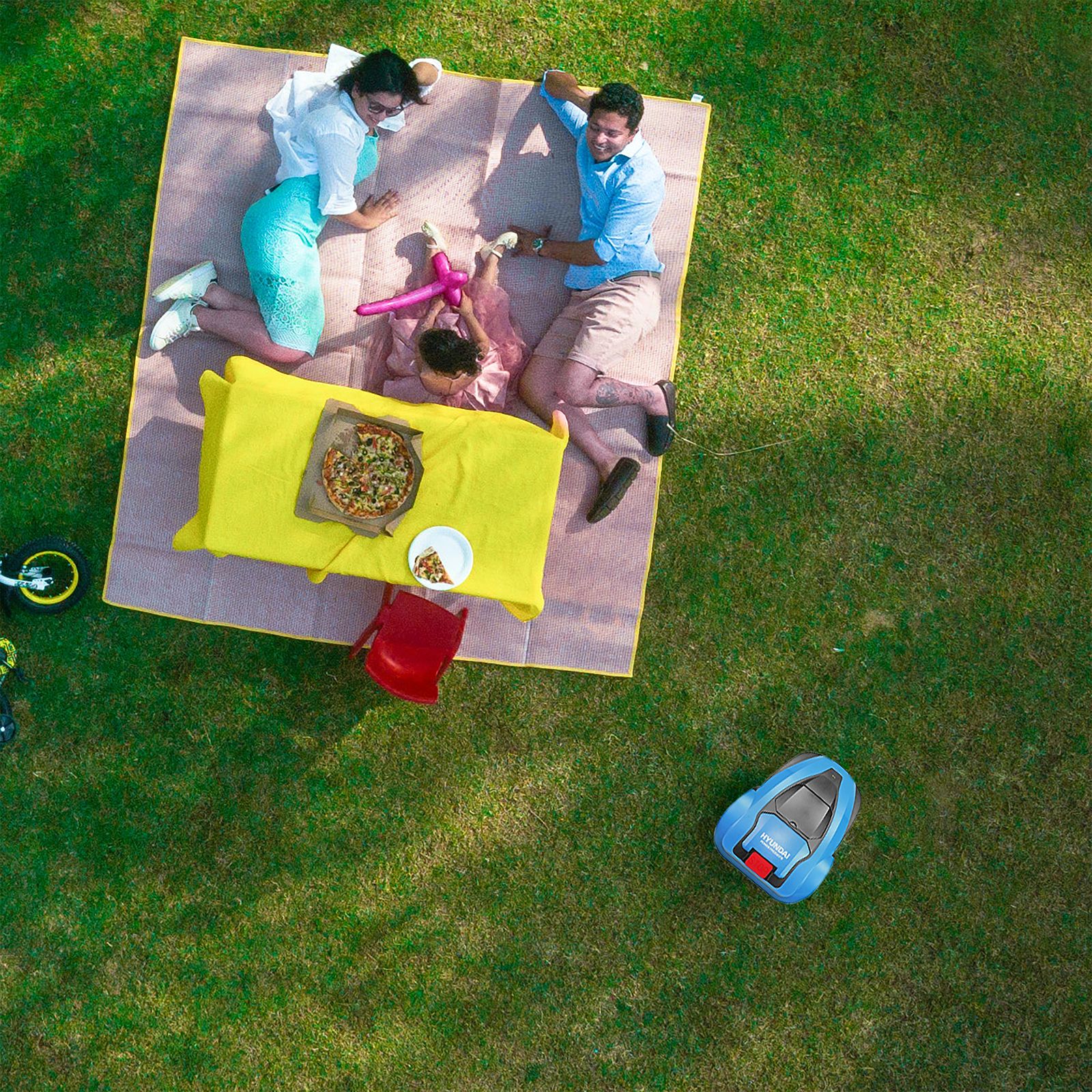 The HYRM1000 is well suited for all garden shapes and sizes and is even capable of mowing on uneven, sloped and hilly surfaces with a gradient up to 30%.
