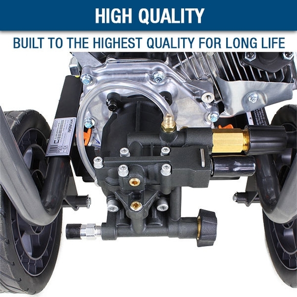 The Hyundai HYW3000P2 Petrol Pressure Washer’s pump is sealed for life, so requires no pump oil changes.