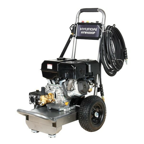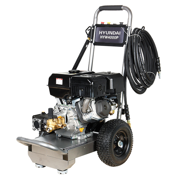 The Hyundai Petrol Pressure Washer 4000PSI HYW4000P is a strong, petrol powered pressure washer, powered by the 420cc 14hp, 4-stoke Hyundai engine, which provides a maximum output of 4000PSI, and a massive flow rate of 15L/min. This heavy duty pressure washer is built for the toughest of cleaning tasks.