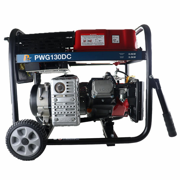 The PWG130DC is a petrol-powered inverter welder generator from P1 Power Equipment, a specially designed inverter generator with a DC welder built-in.