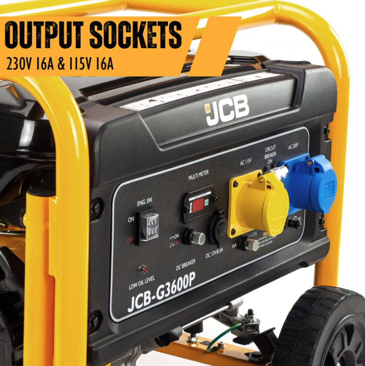 - Powerful JCB Engine: The generator is powered by a 224cc 7.5hp JCB petrol engine, ensuring reliable and consistent power supply.