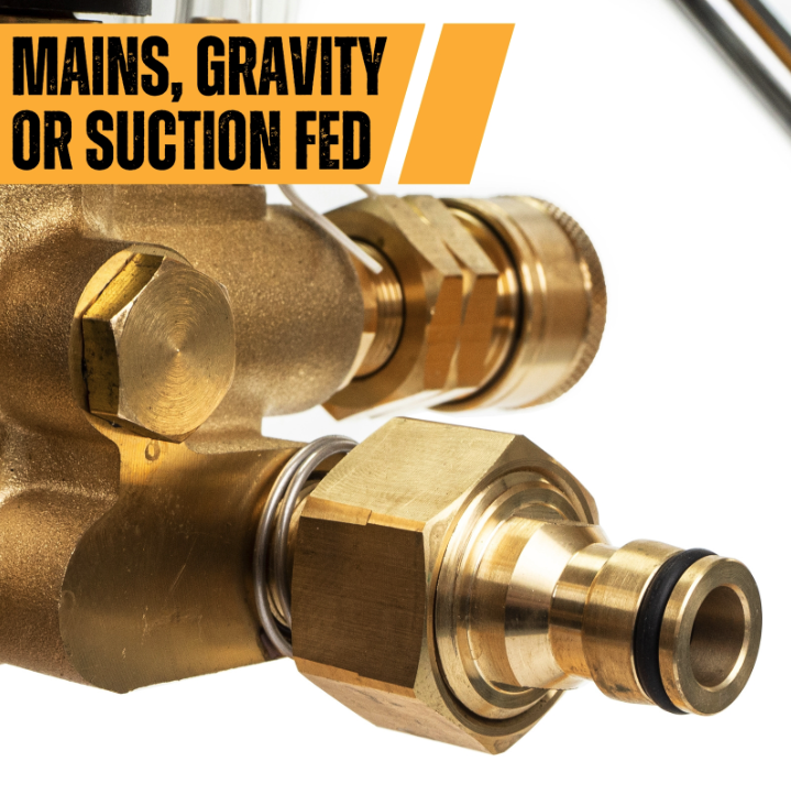 - Flexible Water Source Options: Compatible with various water sources, including mains, gravity feed, or suction feed (up to 2m vertically), ensuring consistent performance in different settings.
