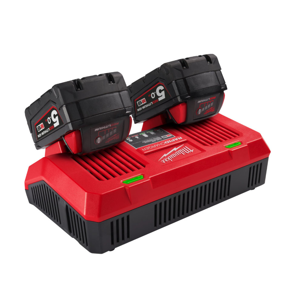 - Dual Bay Rapid Charger capable of charging two M18™ REDLITHIUM™ batteries simultaneously