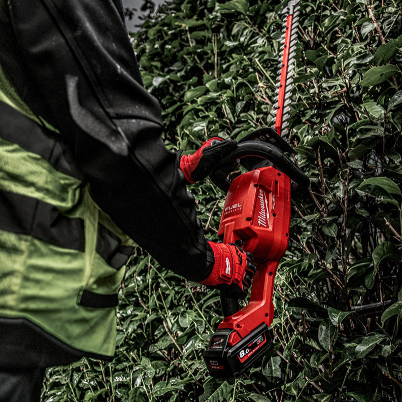 The M18 FUEL™ Hedge Trimmer 60 cm is designed to cut up to 30% faster than cordless competitors, making it the perfect tool for lawn care professionals and homeowners alike. And with its flexible battery system that works with all MILWAUKEE® M18™ batteries, you can easily switch between tools to get the job done.