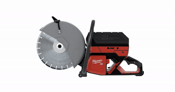 Introducing the Milwaukee MX FUEL™ 350 mm Cut-Off Saw – the world’s first 350 mm battery-powered cut-off saw that delivers the power to cut reinforced concrete with a full 350 mm cut capacity. This saw offers faster cuts from start to finish with a 3-second push button start-up, eliminating the need to mix petrol and oil and avoiding petrol engine maintenance.