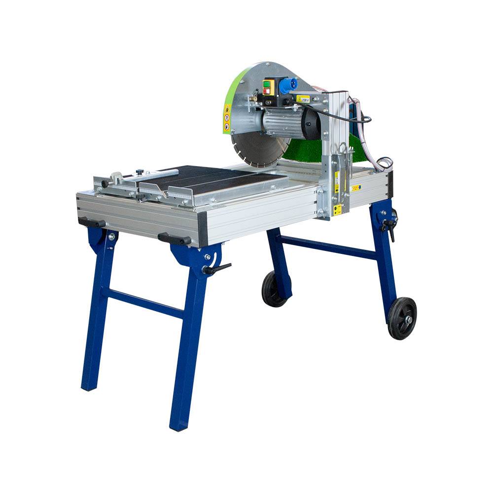 The SIMA Dakar MK400 – Electric Bench Saw is an excellent masonry saw with a maximum cutting depth of 125mm. The MK400 features incredible accuracy and includes a cooling system for both sides of the blade, increasing blade life. Extremely versatile, the cutting length can also be modified by moving the arm alongside the frame. It is very durable and robust as 90% of the machine is made of stainless steel while the remaining 10% is coated with anti-rust epoxy-polyester paint. Additionally, the reinforced aluminium frame and galvanized water tub ensure the MK400 is lightweight, handy and rust-free, which when paired with the folding legs, head and trasport wheels, makes storage and transportation very easy.