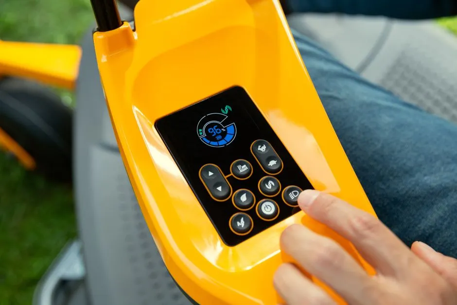 STIGA presents the most innovative and intuitive controller ever designed: A unique electronic system to effortlessly govern the direction, the steering and the speed. With no compromises on manoeuvrability, nor speed. Giving a 360° turning radius for extreme manoeuvrability, higher efficiency, meaning no uncut areas, and finally up to 13 km/h for unmatched productivity.