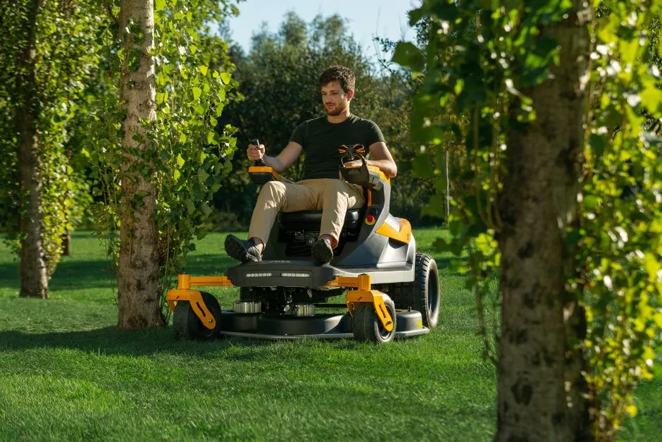STIGA Gyro is the only drive-by-wire joystick mower with STIGA patented Direct Drive technology. With a 125 cm, 3-blades cutting deck and its intuitive driving system, STIGA Gyro 900e allows the user fully govern the machine’s direction, steering and speed. Battery-powered and safe, it covers up to 13.000 sqm area. Up to 150 minutes runtime on one charge.