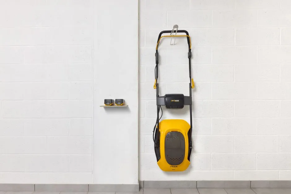 Mow small and simple lawns quickly and effortlessly with STIGA Aero – a cordless mower that rides on air. Its STIGA patented design uses aeronautical technology to optimise battery life and cutting performance. Light yet strong, it’s easy to manoeuvre on slopes. And it’s so small, it can hang on a wall when finished.