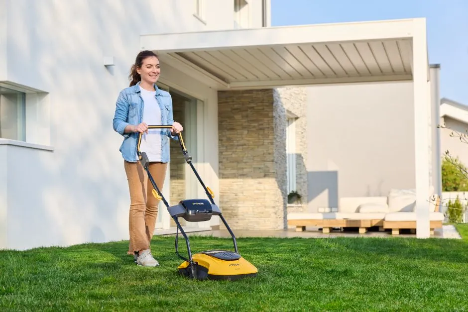 Lightweight and strong. Mowing sloping terrain shouldn’t be a pain in the back: STIGA Aero mows effortlessly on slopes and small lawns, up to 100 sqm.