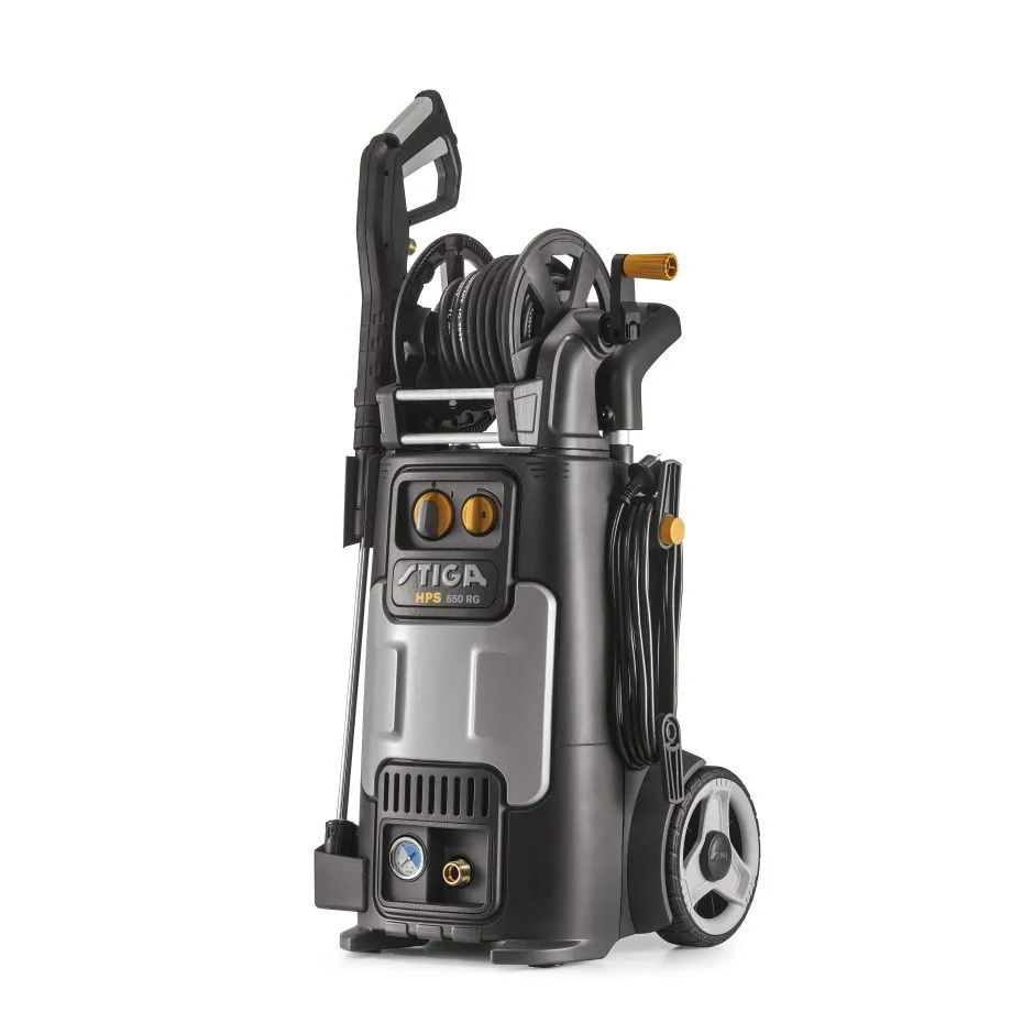 The STIGA HPS 650 RG delivers powerful, deep cleaning of a range of surfaces, from garden machinery to courtyards, cars, vans and swimming pools. This cold water pressure washer is powered by a 2800 W electric motor which delivers a maximum pressure of 150 bar with a flow rate of 550 l/h.
