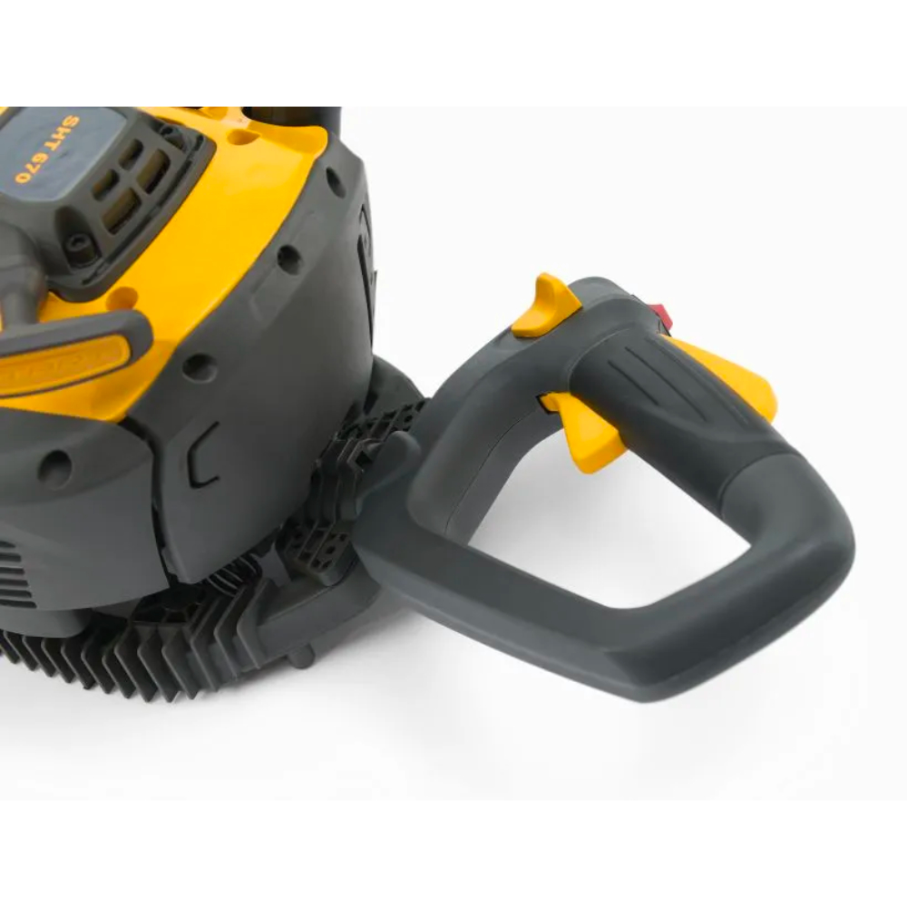 The STIGA SHT 670 petrol hedge trimmer is a gardener’s dream come true, combining power, precision, and ergonomic design into one exceptional tool. With its high-performance 1.14hp engine, this trimmer guarantees not only outstanding cutting power but also lightweight and balanced handling. Its 70cm dual-action diamond-laser-cut blades, crafted with precision, ensure that every cut is clean and consistent. Additionally, the SHT 670 prioritises user comfort with its revolutionary multi-point anti-vibration system, reducing fatigue during prolonged use. The trimmer also boasts an ergonomic design with adjustable front and rear handles, making both vertical and horizontal trimming a breeze.
