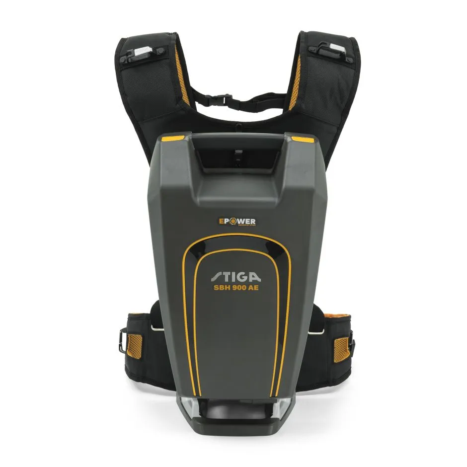 The SBH 900 battery harness takes the battery weight away from the STIGA 900 Series hand-held tool, and distributes it evenly across your back instead. And by doubling the amount of power available, it helps make working sessions far more productive as well as comfortable.