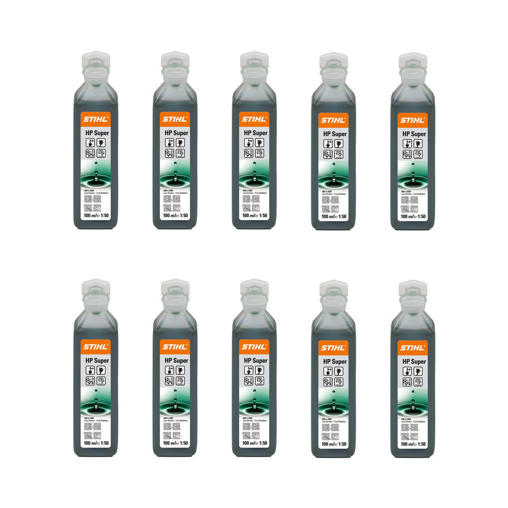 Sold in a box of 10, STIHL HP Super Two Stroke Engine Oil (1 Shot) is a high-performance lubricant that effectively protects your handheld power tools, ensuring reliable engine performance and long service life.