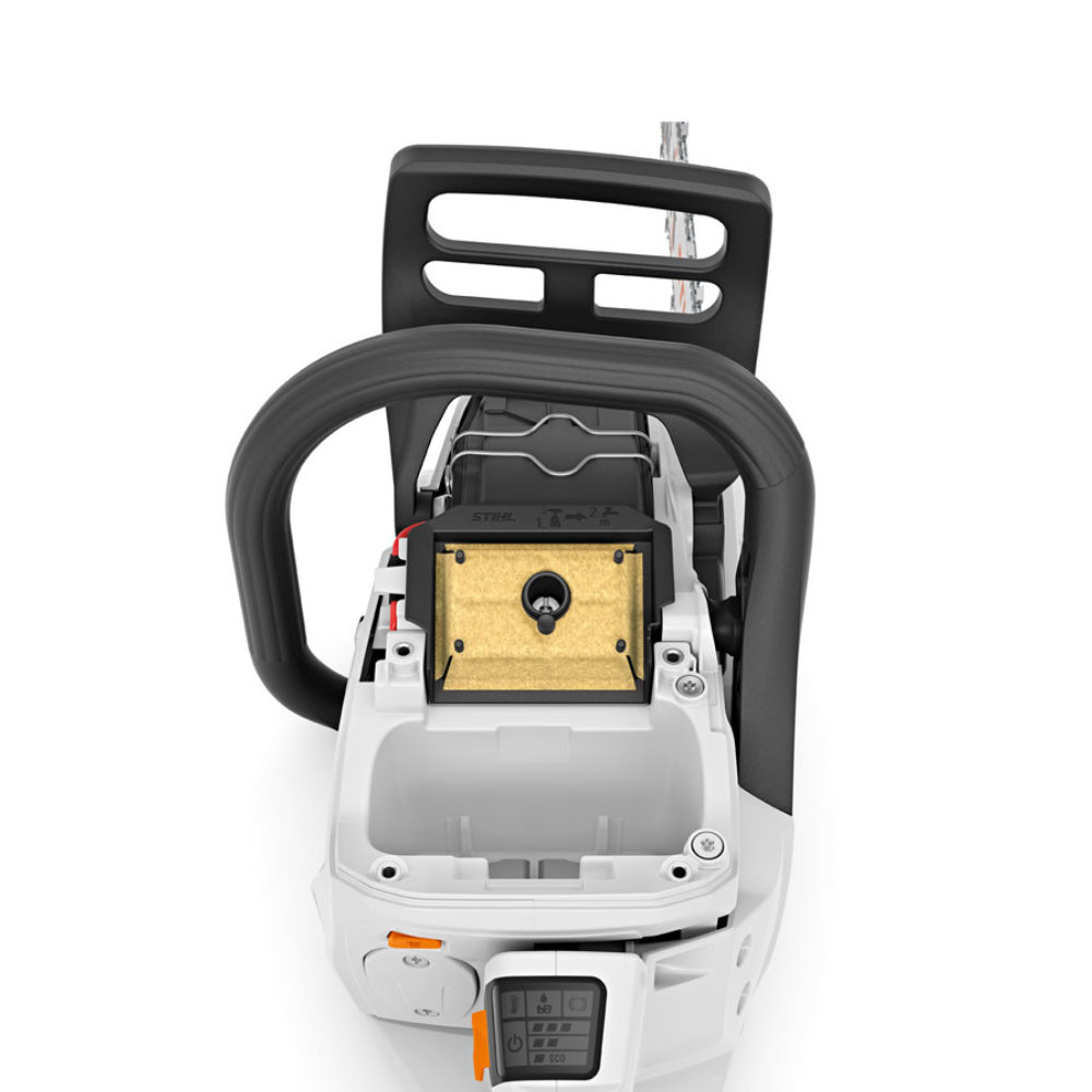 The Stihl MSA 300 Cordless Chainsaw features the Stihl anti-vibration system, which reduces vibrations and relieves your muscles and joints during use. All cordless tools within the Stihl AP system are designed for professional users and daily use, with protection against splashing water from all sides. The Stihl MSA 300 also has certified IPX4 protection against splashing water.