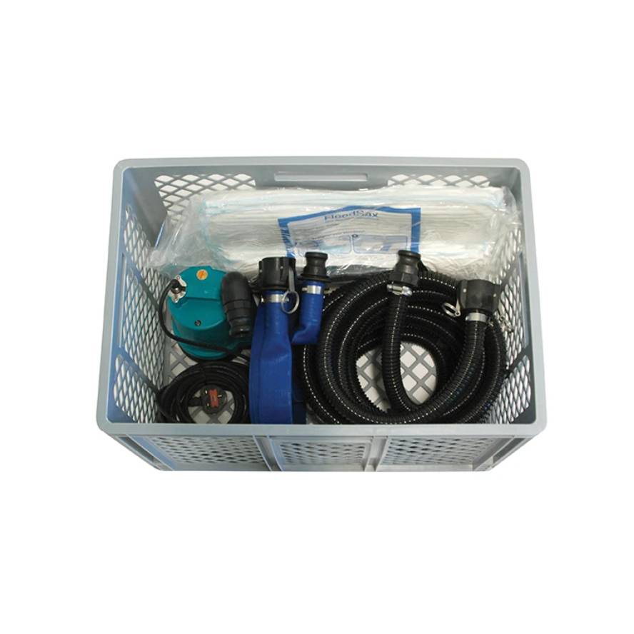The Tsurumi FloodMate 1 Flood Protection Kit is an emergency pumping kit which includes everything needed to protect a property from low level flooding. Depending on which kit is chosen, the included pumps are designed to pump water levels down to a level of between 3mm and 1mm. The included hoses are light, easy to position and feature quick connections which enable fast deployment in emergency situations. The kit comes in a sturdy easy-carry case, providing sufficient space within to store the pumping equipment as well as other flood protection products.[/vc_column_text][/vc_column][/vc_row][vc_row][vc_column width=”1/2″][vc_column_text]